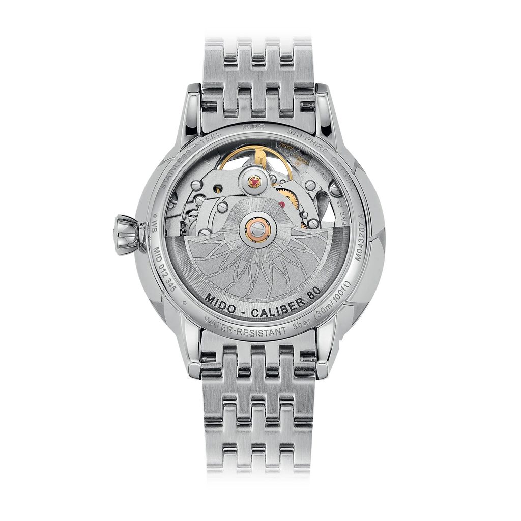 Hodinky Mido M043.236.11.101.00 majú puzdro vrátane náramku vyrobené z ušľachtilej ocele 316L. V puzdre spoľahlivo tiká švajčiarsky mechanický strojček Mido Caliber 80 (na báze ETA C07.631) s automatickým naťahovaním. Pracuje pri frekvencii 21 600 polfrekvencií za hodinu, má 25 drahokamov a predovšetkým predĺženú rezervu chodu na 80 hodín. Činnosť tohto strojčeka možno pozorovať cez priehľadný ciferník a vďaka skeletonizácii aj cez číselník.
