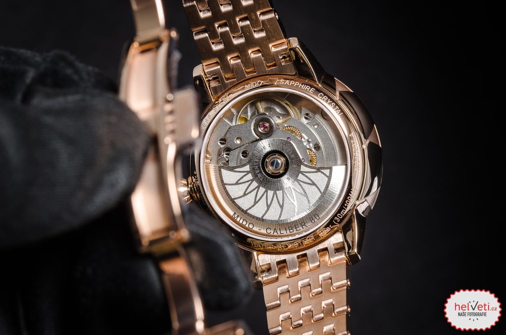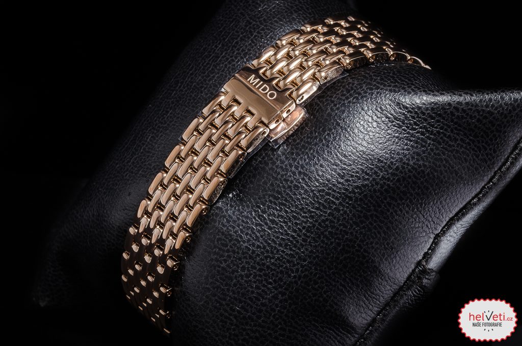 Hodinky Mido M043.207.33.106.00 majú puzdro vrátane náramku vyrobené z ušľachtilej ocele 316L s PVD úpravou vo farbe ružového zlata.