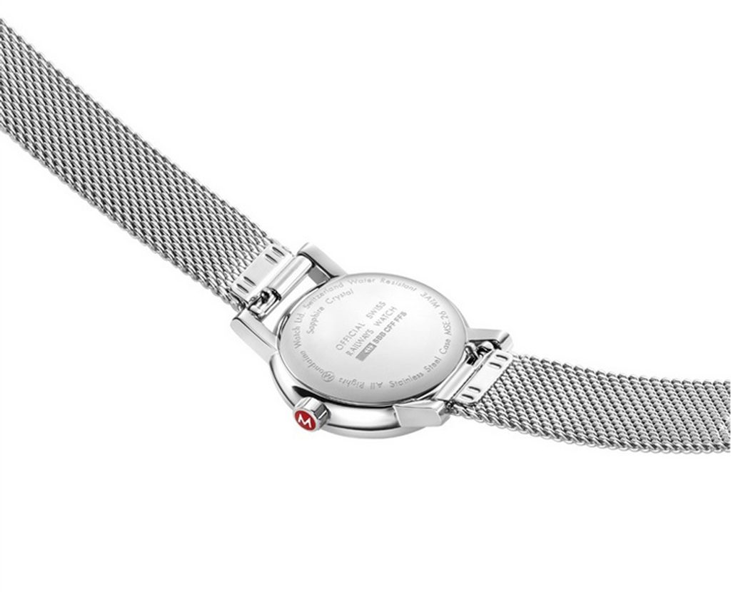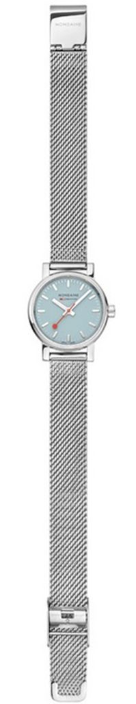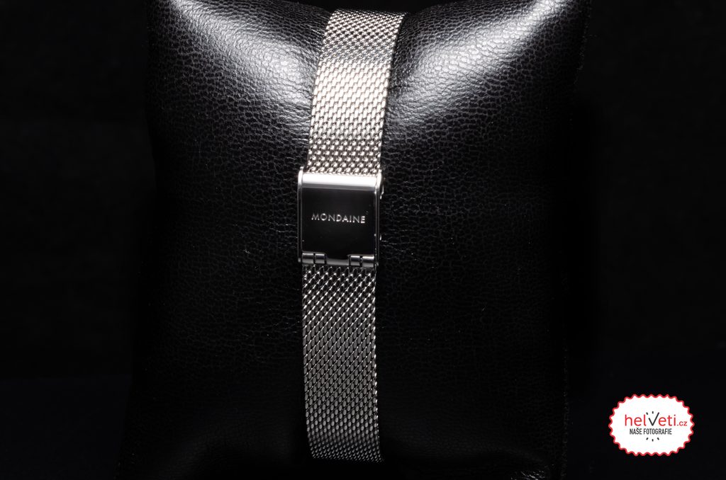 Puzdro hodiniek Mondaine MSE.26140.SM je vyrobené z nehrdzavejúcej ocele a hodinky držia na zápästí vďaka pletenému "sieťovanému" oceľovému náramku, ktorého veľkosť sa dá veľmi ľahko upraviť vďaka posuvnej sponke, a to aj v domácich podmienkach.