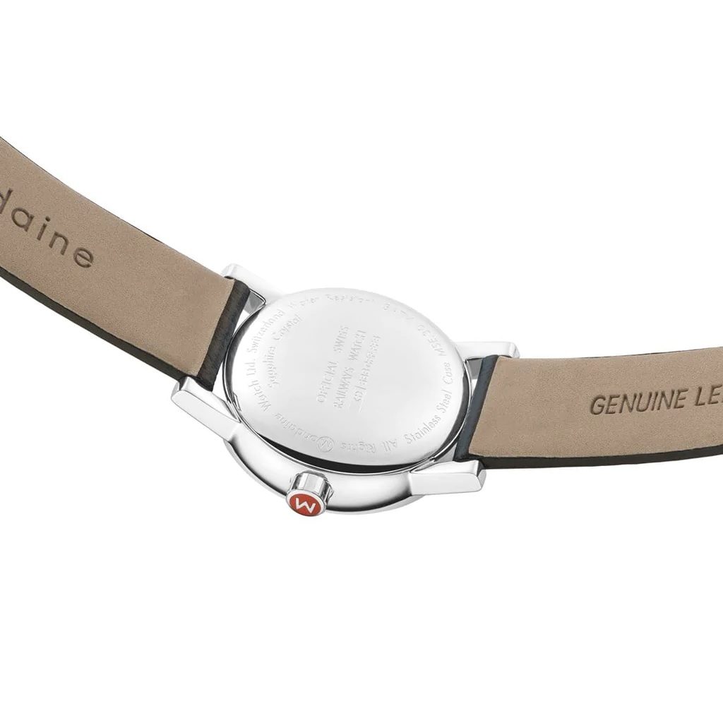 Veľmi priehľadný biely ciferník je chránený zafírovým sklíčkom, ktoré je vysoko odolné proti poškriabaniu. Nezameniteľným symbolom značky Mondaine je červená sekundová ručička.