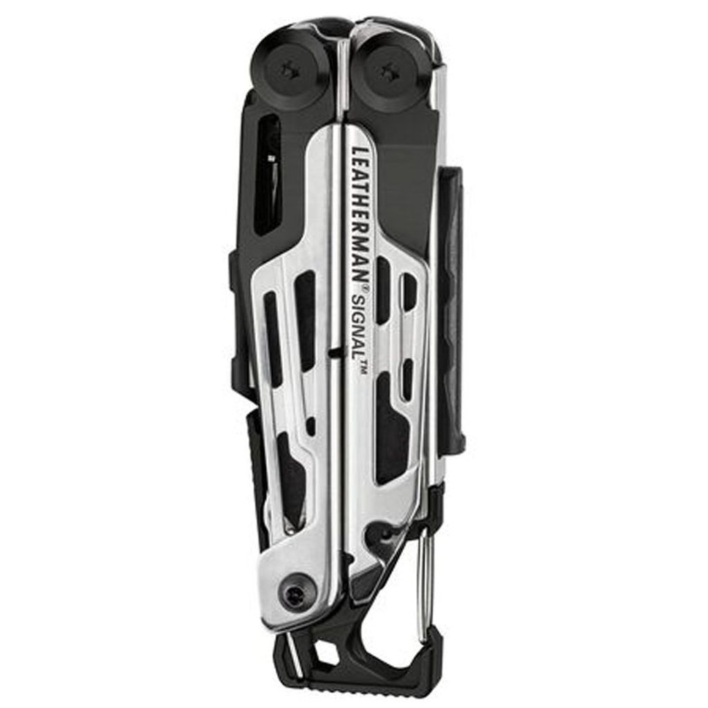 Dostať sa do situácie, keď vám ide doslova o život, nie je ťažké. Stačí sa stratiť v lese, stratiť sa kdekoľvek v prírode. V tej chvíli budete radi za každú pomoc. Leatherman SIGNAL ich poskytuje devätnásť. Medzi devätnástimi nástrojmi novej outdoorovej špeciality SIGNAL, ktoré vám pomôžu nielen v okamihu núdze, je kremeň s diamantovým brúsikom, s ktorého pomocou veľmi ľahko založíte oheň, signálna píšťalka na komunikáciu s okolím, karabína na zavesenie, ale aj nôž s kombinovanou čepeľou, kladivo, šidlo, sada otváračov na fľaše a skrutkovačov a, samozrejme, tradičné multifunkčné kliešte.