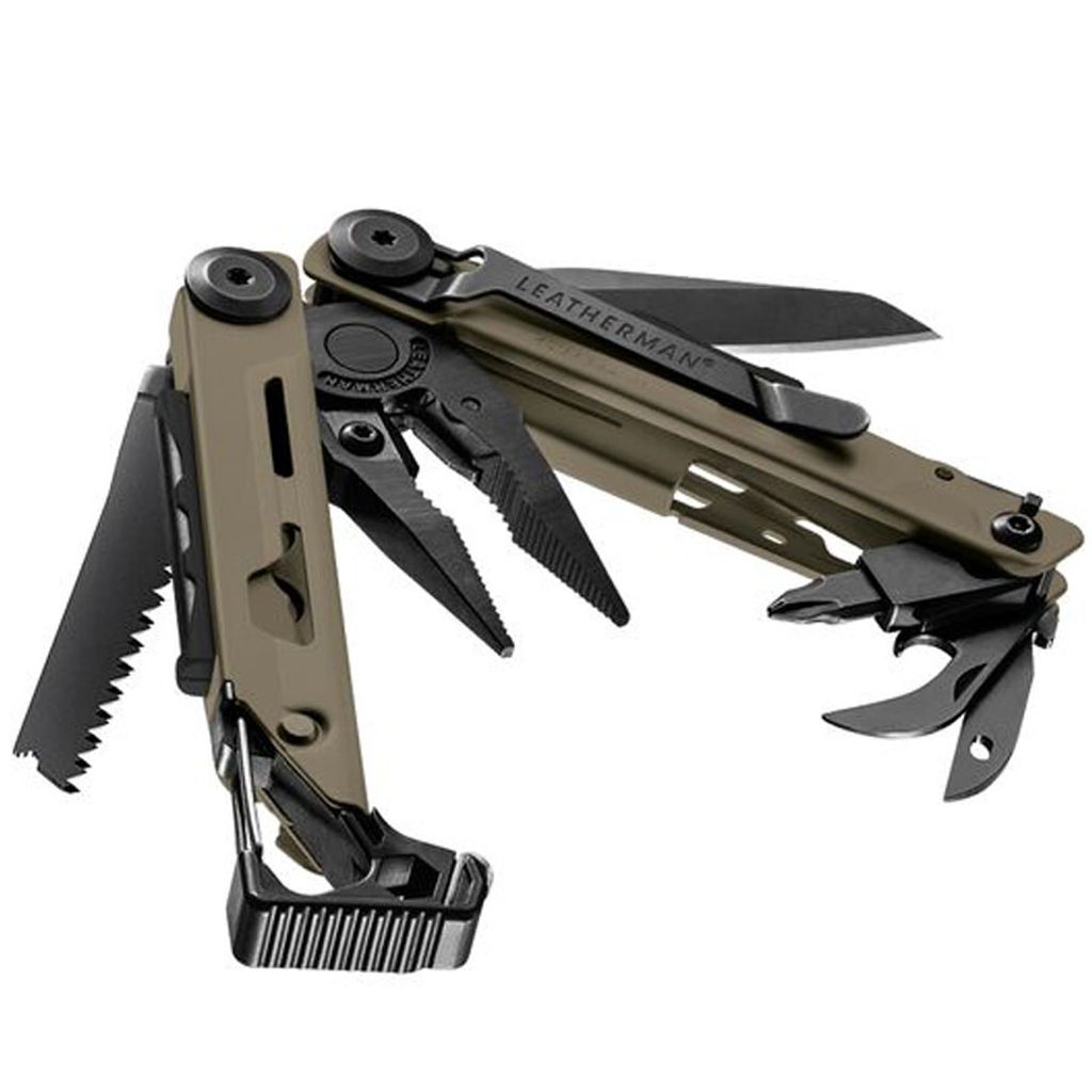 | Funkcia | Nôž, Otvárač na konzervy, Otvárač na fľaše, Pílka, Štípacie kliešte na tvrdé drôty, Štípacie kliešte na mäkké drôty, Uťahovacie kliešte, Ihlové kliešte, Diamantový brúsok, Kresadlo, Záchranná píšťala, Karabína, Nástavec na Bity, Šidlo, Kladivo, Izolovací brit |