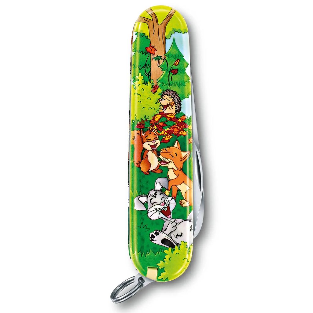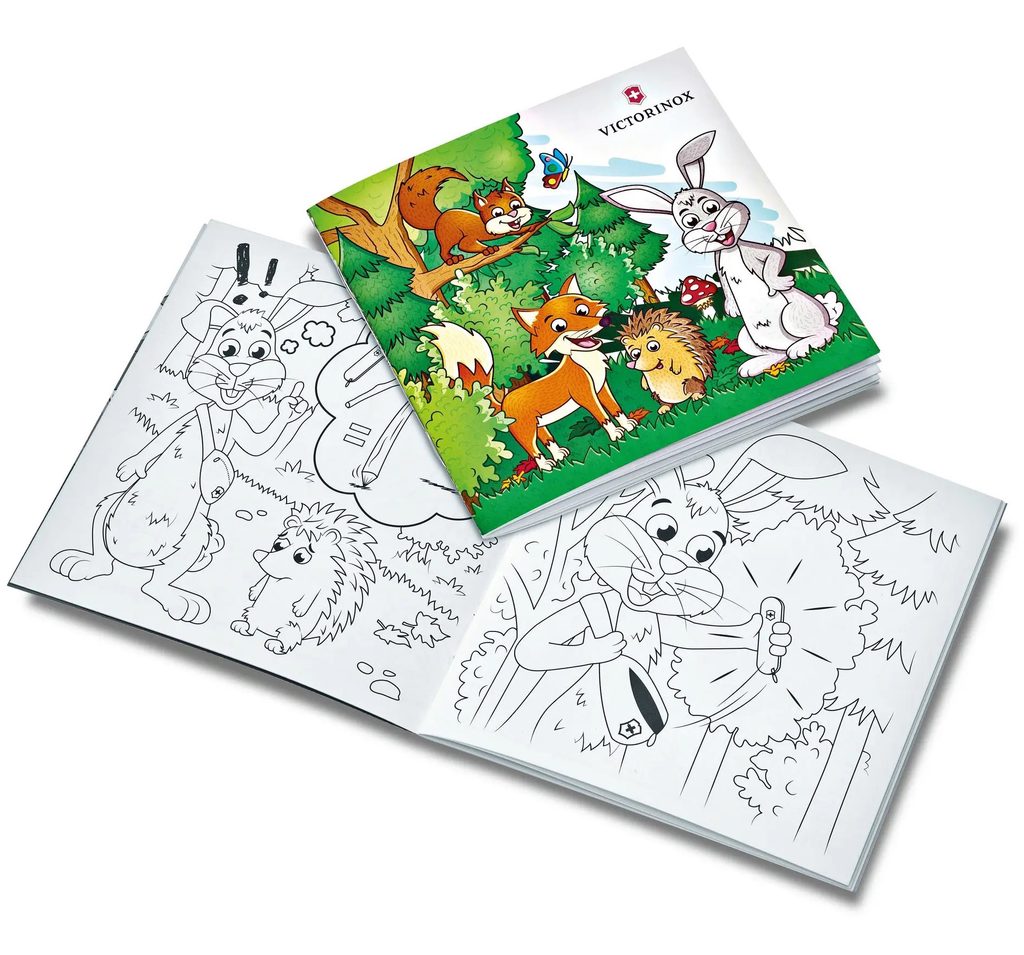 Zábavná súprava Môj prvý Victorinox je ideálnym darčekom pre dobrodružné a zvedavé deti. Sada sa skladá z noža, závesu na krk a farebných stránok, ktoré okrem iného ukazujú, ako bezpečne zaobchádzať s nožom (pod dohľadom dospelého).