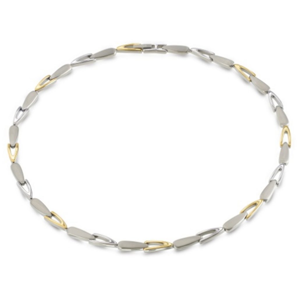 Čistá elegancia, minimalizmus a dôraz na originálny dizajn. Týmito vlastnosťami sa môže pochváliť náhrdelník z kolekcie Boccia Titanium. Nádherne spracovaný titánový náhrdelník je bezpochyby premyslený do posledného detailu. Zaujme nielen svojou povrchovou úpravou v kombinácii žltého zlata a matu, ale aj jedinečným tvarom jednotlivých článkov. Vďaka svojmu dizajnu sa hodí na každú príležitosť. Náhrdelník je vyrobený z titánu, ktorý je ľahký, pevný a hypoalergénny. Preto je vhodný aj pre ľudí so zvýšenou citlivosťou na kovy.