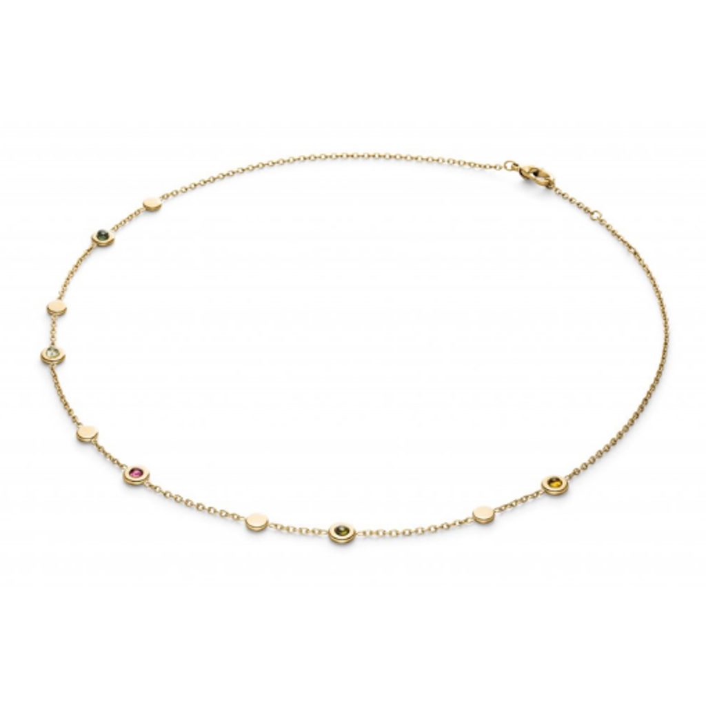 Úchvatná kombinácia pre milovníkov jedinečnosti. Náhrdelník z kolekcie Boccia Titanium na prvý pohľad vyniká luxusným dizajnom. Jemný náhrdelník na retiazke zo žltého zlata zdobí celkom desať drobných plochých kameňov, z ktorých päť je osadených pôsobivými turmalínmi rôznych farieb. Výsledkom je skutočne pútavý šperk, ktorý premení nevšedný deň na luxusný zážitok. Keďže je náhrdelník vyrobený z titánu, je zároveň nádherne ľahký, pevný a odolný. Je tiež hypoalergénny, čo ocenia najmä osoby citlivé na kovy.