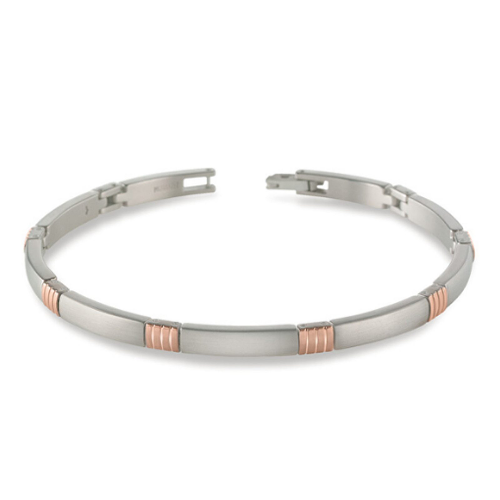 Ozdobiť si zápästie originálnym a elegantným kúskom nebude vďaka náramku Boccia Titanium žiadny problém. Na prvý pohľad zaujme svojím štýlovým dizajnom a zaujme najmä kontrastom medzi matnými a ružovo pozlátenými článkami. Zapínanie je šikovne navrhnuté s praktickou sponou. Náramok je vyrobený z kvalitného titánu, takže je príjemne ľahký, pevný a zároveň hypoalergénny. Jeho vlastnosti ocenia najmä ľudia s vyššou citlivosťou na kovy.