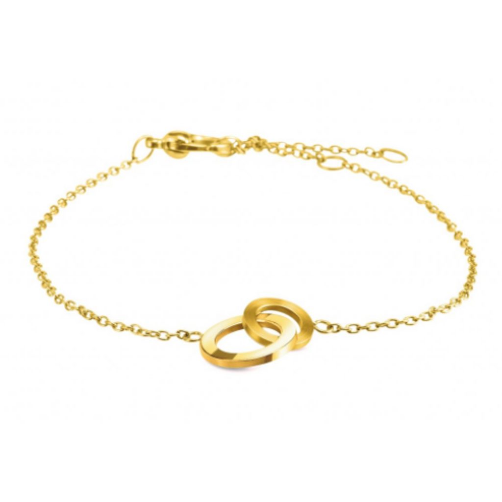 Jeho jedinečnosť je spôsobená pokovovaním žltým zlatom a najmä príveskom v tvare dvoch spojených kruhov. Skutočne nádherné spracovanie, ktoré si zamilujete na prvý pohľad. Náramok je vyrobený z titánu, ktorý je ľahký, pevný a zároveň hypoalergénny. Preto je vhodný aj pre ľudí so zvýšenou citlivosťou na kovy.
