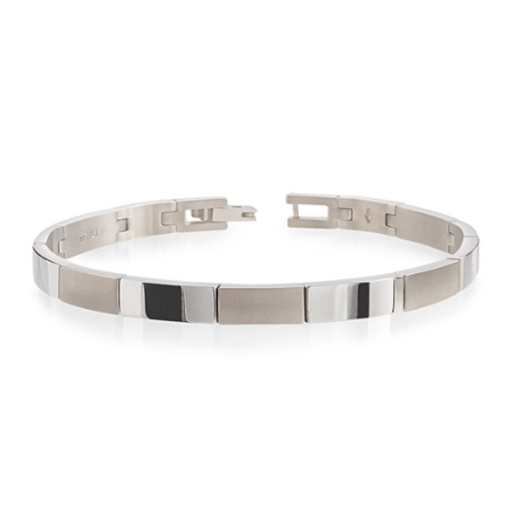 Nechajte sa uniesť šarmom tohto pôsobivého náramku od značky Boccia Titanium, ktorý vás osloví svojou nadčasovosťou, ľahkosťou a moderným spracovaním s nádychom elegancie. Obdĺžnikové vďaka povrchovej úprave vo farbe ocele, ktorá sa pravidelne strieda s matnou a lesklou, sú neoddeliteľnou súčasťou dizajnu. Vďaka svojmu univerzálnemu vzhľadu je úplne ideálna na každodenné nosenie aj na dôležité obchodné stretnutia. Náramok je vyrobený z titánu, ktorý je ľahký, pevný a hypoalergénny. Preto je vhodný aj pre ľudí so zvýšenou citlivosťou na kovy.