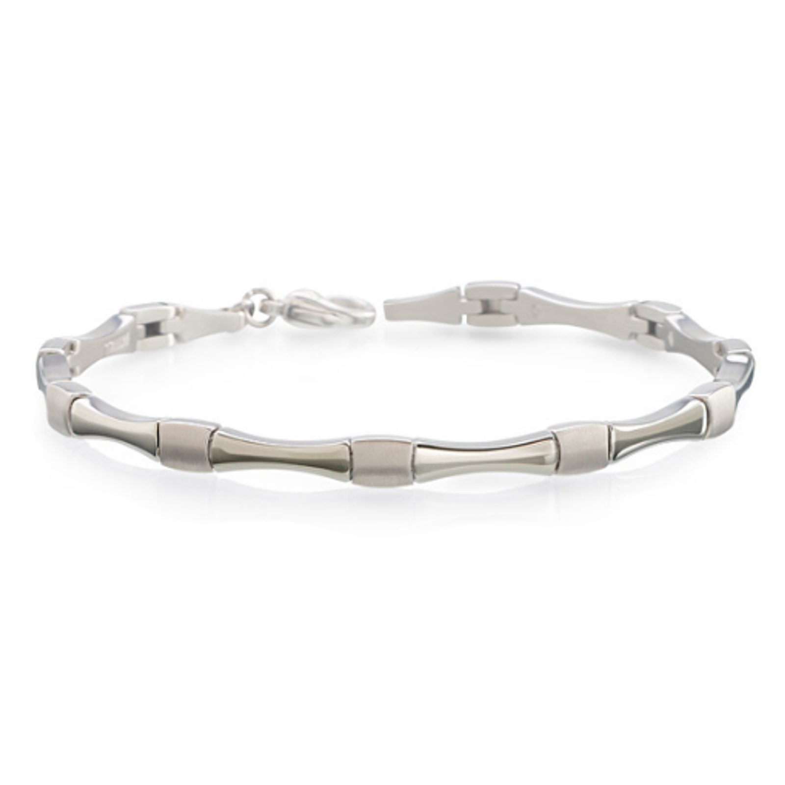 Sofistikovaný dizajn podčiarknutý nadčasovým štýlom. Presne v tomto duchu sa nesie náramok Boccia Titanium, ktorý si na prvý dojem získa veľa sympatií. Samotný podstavec je titánový v lesklej aj matnej povrchovej úprave, ktorý je známy svojou jemnou a elegantnou povahou. Čo vás však príjemne prekvapí, je zaujímavé tvarovanie jednotlivých častí, ktoré náramku dodávajú nádych nevšednosti. Vďaka svojmu vzhľadu je ideálny na všetky príležitosti. Zapína sa klasicky pomocou karabíny. Náramok je vyrobený z titánu, ktorý je ľahký, pevný a hypoalergénny. Preto je vhodný aj pre ľudí so zvýšenou citlivosťou na kovy.