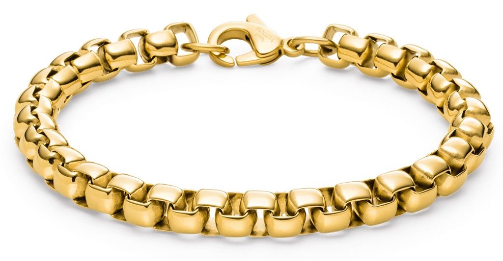 Jeho dizajn sa spolieha na pôvab pokovovania žltým zlatom a robustný štýl. Jeho moderné spracovanie, ktoré kombinuje klasickú retiazku náramku a masívny dizajn, nenechá chladným žiadneho milovníka originálnych šperkov. Keďže náramok je vyrobený z titánu, je neuveriteľne ľahký, pevný a zároveň hypoalergénny. Preto je vhodný pre ľudí so zvýšenou citlivosťou na kovy.