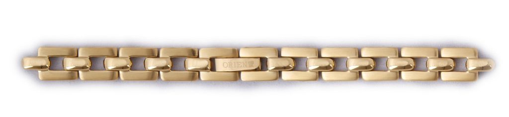 Originálny oceľový náramok Orient v zlatej farbe sa môže pochváliť dizajnom nenáročným na údržbu. Jeho lesklá povrchová úprava navyše dodá vašim hodinkám nádych elegancie.