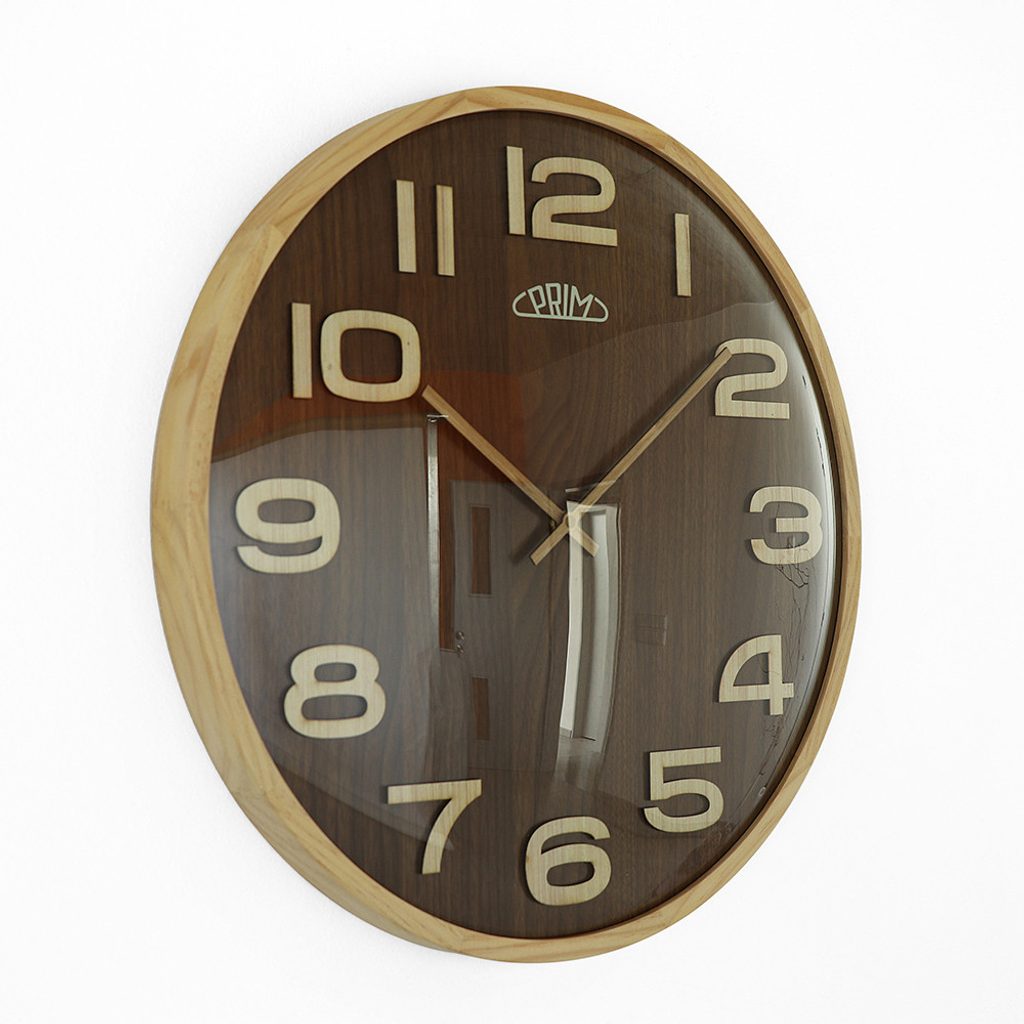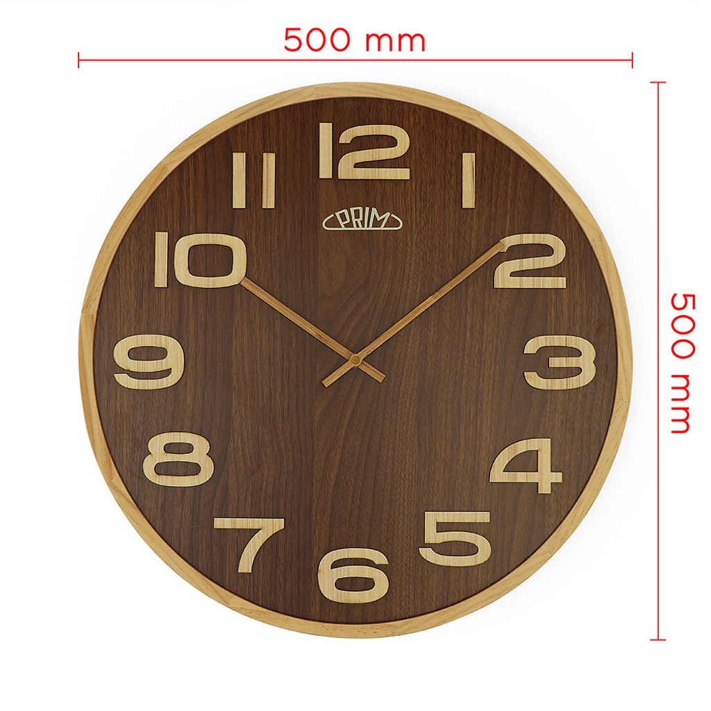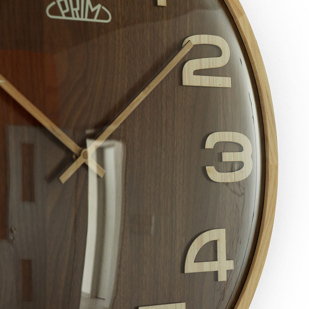 Nástenné hodiny PRIM Timber Veneer s rozmermi ∅ 500 mm budú vďaka veľkému dyhovanému ciferníku z MDF výrazným prvkom vo vašom interiéri. Spolu s drevenými číslicami v 3D prevedení pôsobia hodiny hrejivým a prirodzeným dojmom. Tieto hodiny majú vypuklé sklo, ktoré im dodáva nádych luxusu. Hodiny majú plynulý chod (sweep).