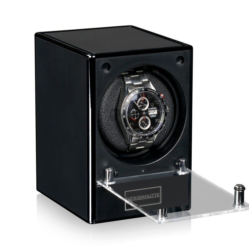 Naťahovač Designhütte Piccolo 70005/191.10 čierny, pre 1 mechanické hodinky s automatickým naťahovaním. Funguje na báze prenosnej energie, t. j. pri zakúpení druhého až štvrtého naťahovacieho zariadenia rovnakého typu nie je potrebné kupovať adaptér, stačí pripojiť toto naťahovacie zariadenie k existujúcemu a v priebehu niekoľkých sekúnd sa energia prenesie do druhého až štvrtého naťahovacieho zariadenia, 1 adaptér dokáže napájať až 4 naťahovacie zariadenia Piccolo alebo Piccolo Modular.