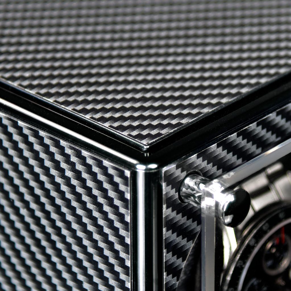 Designhütte Piccolo 70005/191.17 čierny ciferník s karbónovým vzorom, pre 1 kus mechanických hodiniek s automatickým naťahovaním. Funguje na báze prenosnej energie, t. j. pri zakúpení druhého až štvrtého naťahovacieho zariadenia rovnakého typu nie je potrebné kupovať adaptér, stačí pripojiť toto naťahovacie zariadenie k existujúcemu a v priebehu niekoľkých sekúnd sa energia prenesie do druhého až štvrtého naťahovacieho zariadenia, 1 adaptér dokáže napájať až 4 naťahovacie zariadenia Piccolo alebo Piccolo Modular.
