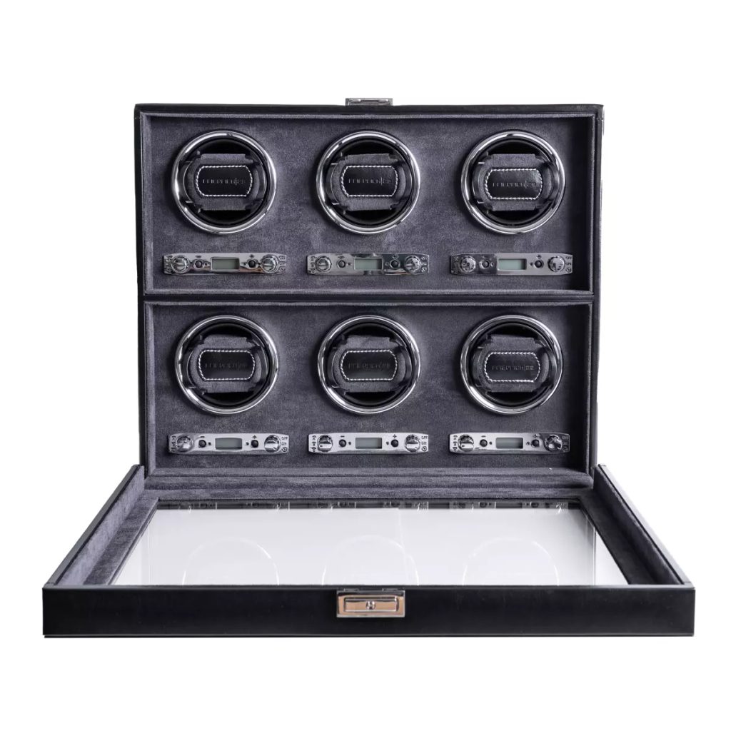 Naťahovač Friedrich Lederwaren Bond 29484-9 na 6 mechanických hodiniek s automatickým náťahom, ktoré zaujme svojím klasickým dizajnom. Je vyrobené zo syntetického materiálu a jeho vnútro je vyhotovené v čiernej farbe.