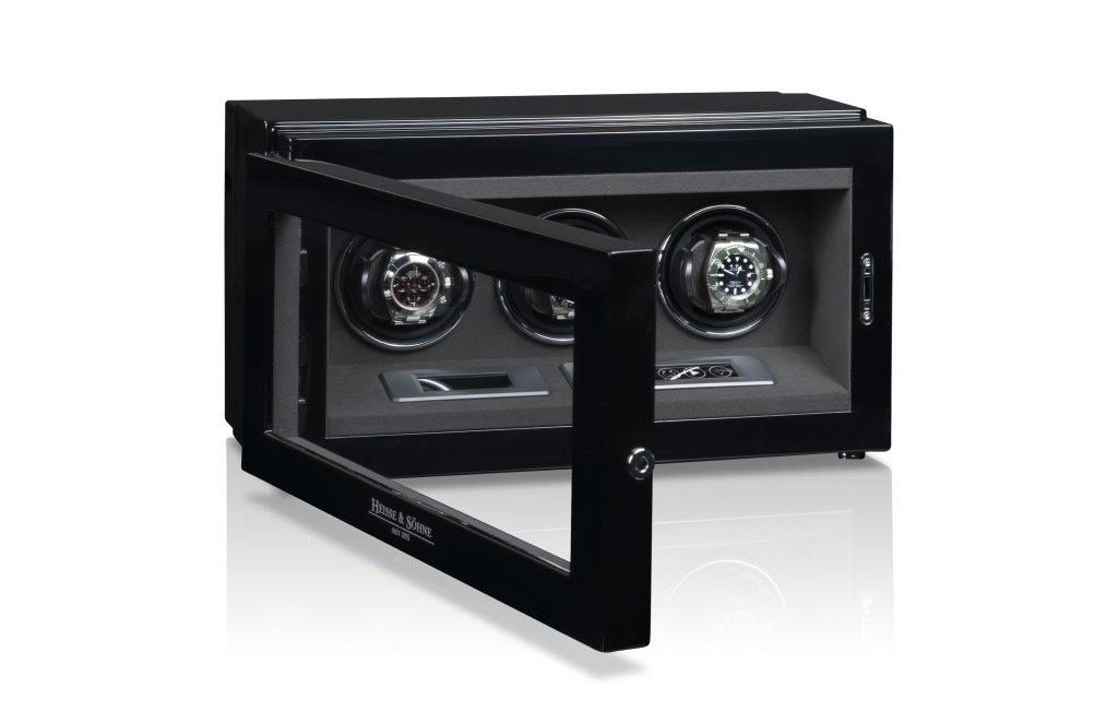Naťahovač Heisse & Söhne Watch Master 3 70019-242.142 pre 3 mechanické hodinky s automatickým naťahovaním. Je vyrobený z dreva v čiernom klavírnom lesku. Tento krásny model spĺňa najvyššie štandardy pre nové technológie a dizajn. Telo naťahovača je vyrobené z dreva, dvierka sú vybavené minerálnym sklom.