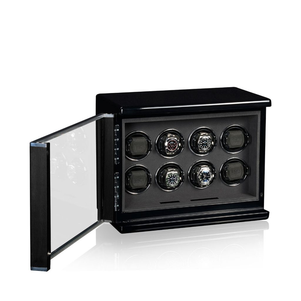 Heisse & Söhne Meranto 8 70019-135.11 naťahovač pre 8 mechanických hodiniek s automatickým naťahovaním. Naťahovač je čierny, LCD displej pre príjemné ovládanie, vnútorný materiál je velúr v čiernej farbe.
