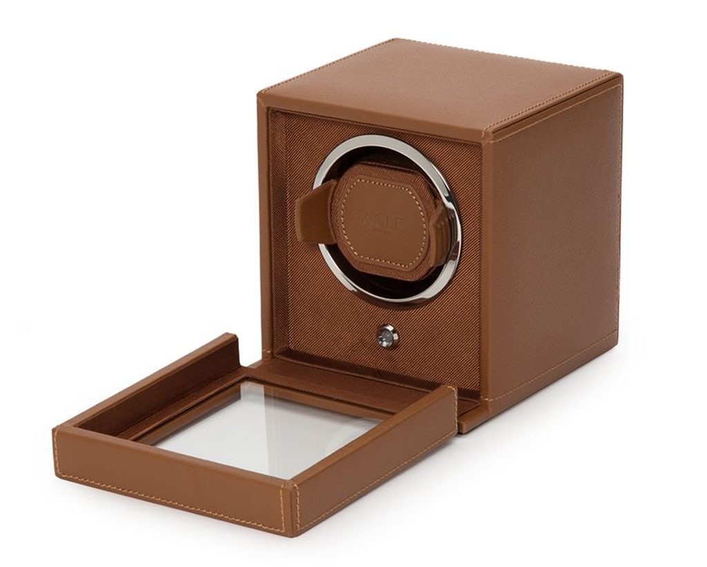 Naťahovač Wolf Cub 461127 hnedý, pre 1 ks mechanických hodiniek s automatickým naťahovaním. Naťahovač bol navrhnutý tak, aby sa do neho zmestili aj väčšie hodinky (puzdro do 52 mm ).
