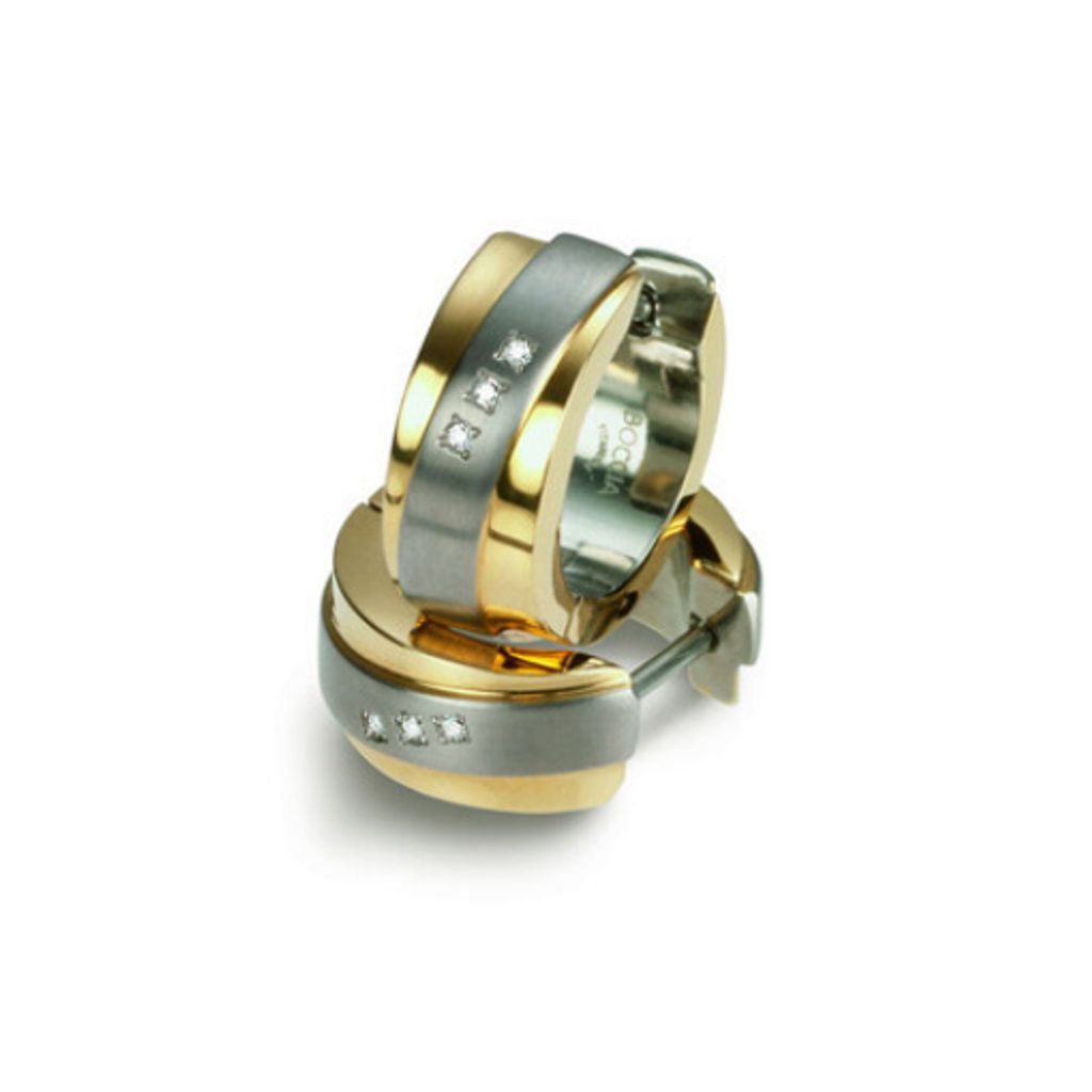 Špeciálne náušnice, ktoré na prvý pohľad potešia každú ženu, ktorá miluje nadčasový dizajn. Reč je o titánových náušniciach z kolekcie Boccia Titanium, ktoré ukazujú pôvab matného titánu v kontraste s pokovovaním žltým zlatom. Celkový nádych luxusu dotvárajú tri číre diamanty s čistotou 0,03 karátu osadené v každej náušnici. Vďaka svojmu vzhľadu sú skvelým doplnkom každého oblečenia. Keďže náušnice sú vyrobené z titánu, sú neuveriteľne ľahké, pevné a hypoalergénne. Preto je vhodný aj pre ľudí so zvýšenou citlivosťou na kovy.