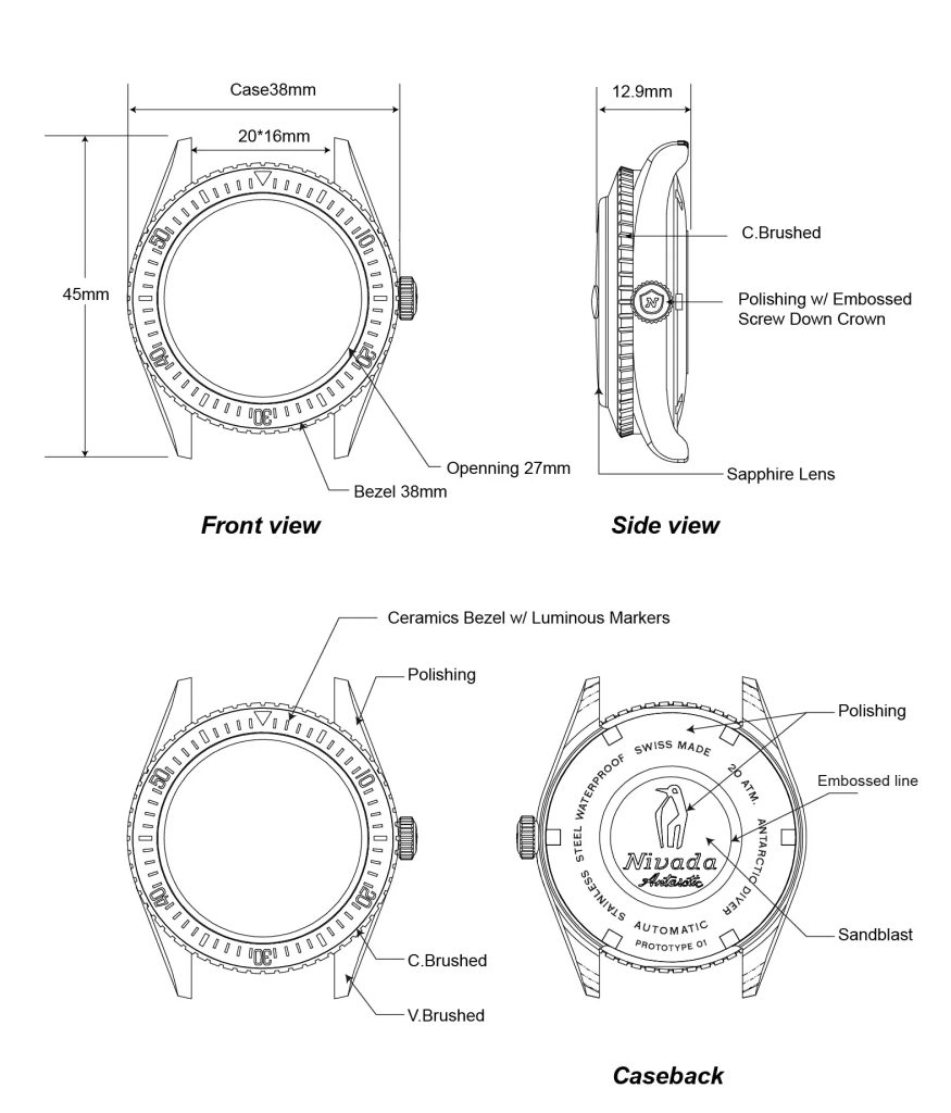 Hodinky Diver majú stredne veľké puzdro s priemerom 38 mm a hrúbkou 12,9 mm, vyrobené z nehrdzavejúcej ocele 316, doplnené keramickým rámikom s výraznými indexmi umiestnenými po obvode puzdra. Vo vnútri hodiniek sa nachádza automatický strojček SOPROD P024 s rezervou chodu 38 hodín. Model má vodotesnosť 20 ATM.
