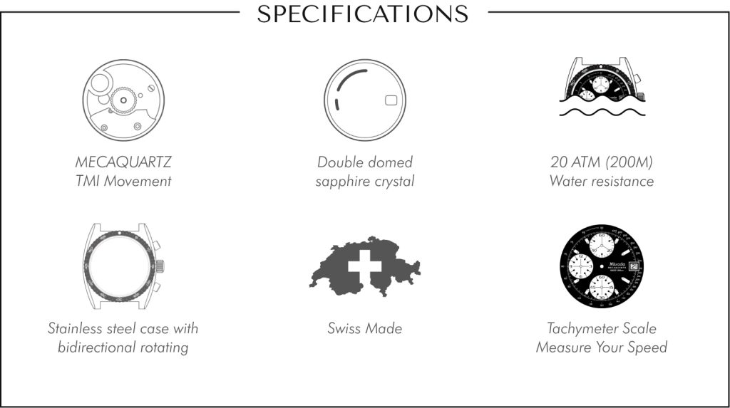 Nivada Grenchen, založená ve městě Grenchen ve Švýcarsku v roce 1926, je značka, která byla známá svými hodinářskými inovacemi v 50. a 60. letech s jejich legendárními kolekcemi Antarctic & Chronomaster Aviator Sea Diver. Dnes, téměř o století později, restartovali Nivadu Grenchen s cílem přivést zpět k životu dědictví a designy, které tehdy Nivadu vytvářely.