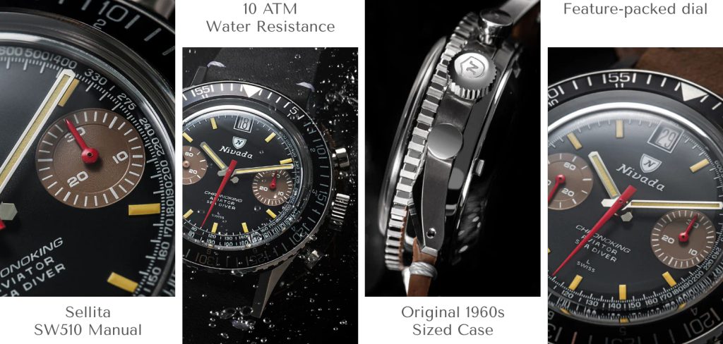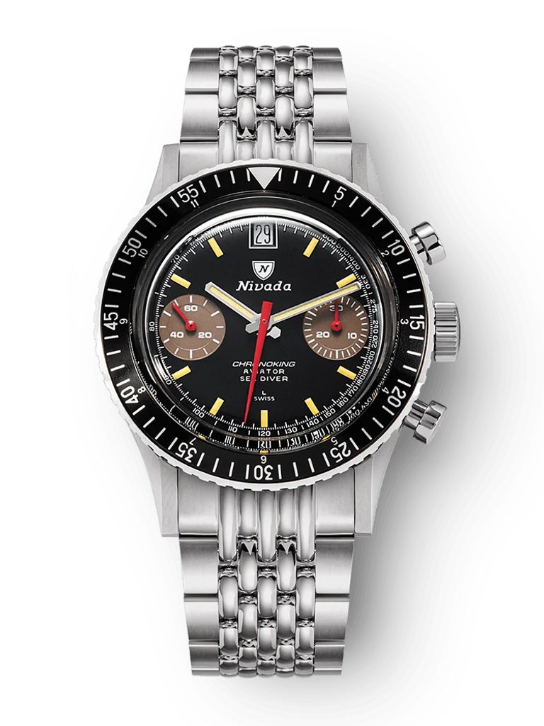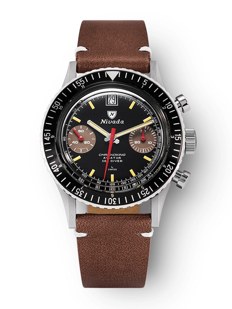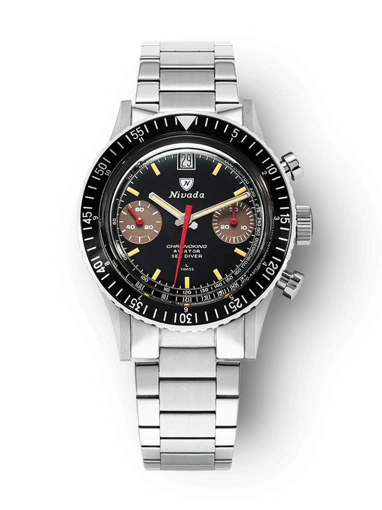 Nivada Grenchen, založená ve městě Grenchen ve Švýcarsku v roce 1926, je značka, která byla známá svými hodinářskými inovacemi v 50. a 60. letech s jejich legendárními kolekcemi Antarctic & Chronomaster Aviator Sea Diver. Dnes, téměř o století později, restartovali Nivadu Grenchen s cílem přivést zpět k životu dědictví a designy, které tehdy Nivadu vytvářely.