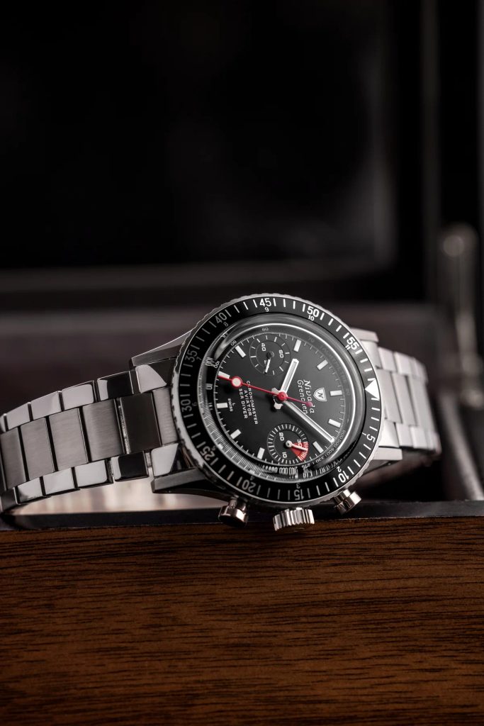 Nivada Grenchen, založená ve městě Grenchen ve Švýcarsku v roce 1926, je značka, která byla známá svými hodinářskými inovacemi v 50. a 60. letech s jejich legendárními kolekcemi Antarctic & Chronomaster Aviator Sea Diver. Dnes, téměř o století později, restartovali Nivadu Grenchen s cílem přivést zpět k životu dědictví a designy, které tehdy Nivadu vytvářely.