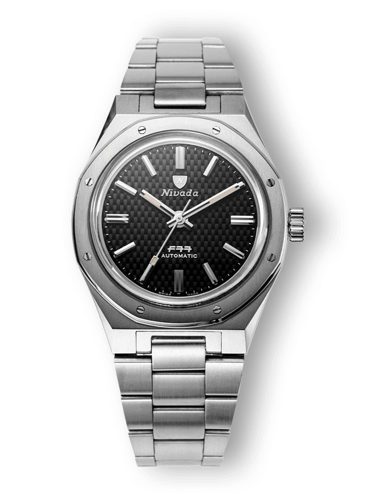 Nivada Grenchen nezačína nič iné ako demokratickú revolúciu. Zatiaľ čo "športovo-elegantné" oceľové hodinky s integrovaným náramkom sú buď len na počkanie, alebo lámu cenové rekordy na aukciách, model F77 je reedícia švajčiarskej klasiky z roku 1977, ktorá je nekompromisná v dizajne a kvalite vyhotovenia!