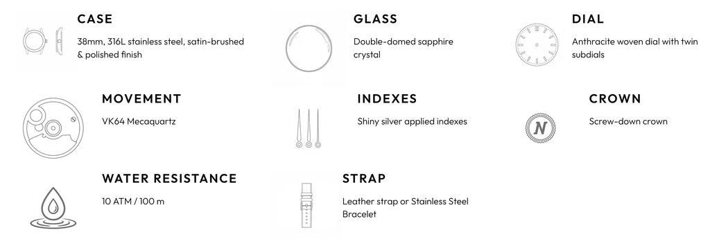 Nivada Grenchen, založená ve městě Grenchen ve Švýcarsku v roce 1926, je značka, která byla známá svými hodinářskými inovacemi v 50. a 60. letech s jejich legendárními kolekcemi Antarctic & Chronomaster Aviator Sea Diver. Dnes, téměř o století později, restartovali Nivadu Grenchen s cílem přivést zpět k životu dědictví a designy, které tehdy Nivadu vytvářely.