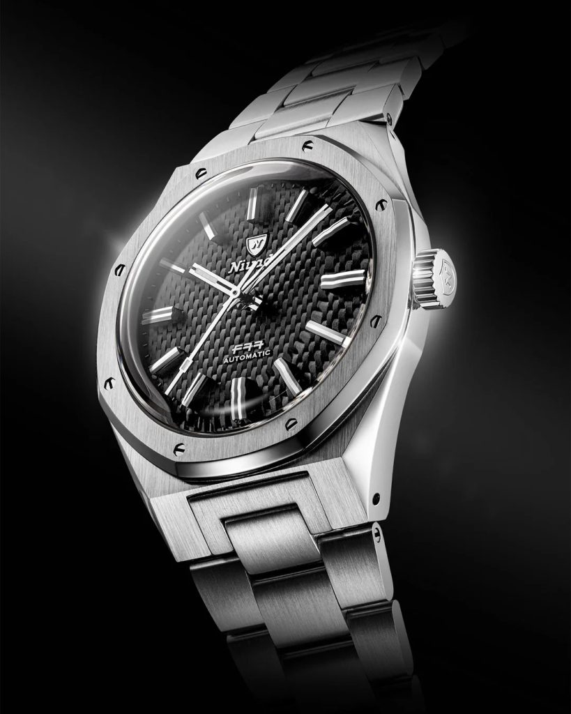 F77 F77 Pánske automatické hodinky Pánske oceľové hodinky Pánske spoločenské hodinky Pánske švajčiarske hodinky Pánske strieborné hodinky Pánske čierne hodinky Pánske hodinky nad 400 EUR Pánske hodinky novinky Pánske mechanické hodinky Pánske hodinky s oceľovým náramkom Pánske hodinky so zafírovým sklíčkom Nivada Grenchen Pánske hodinky Nivada Grenchen