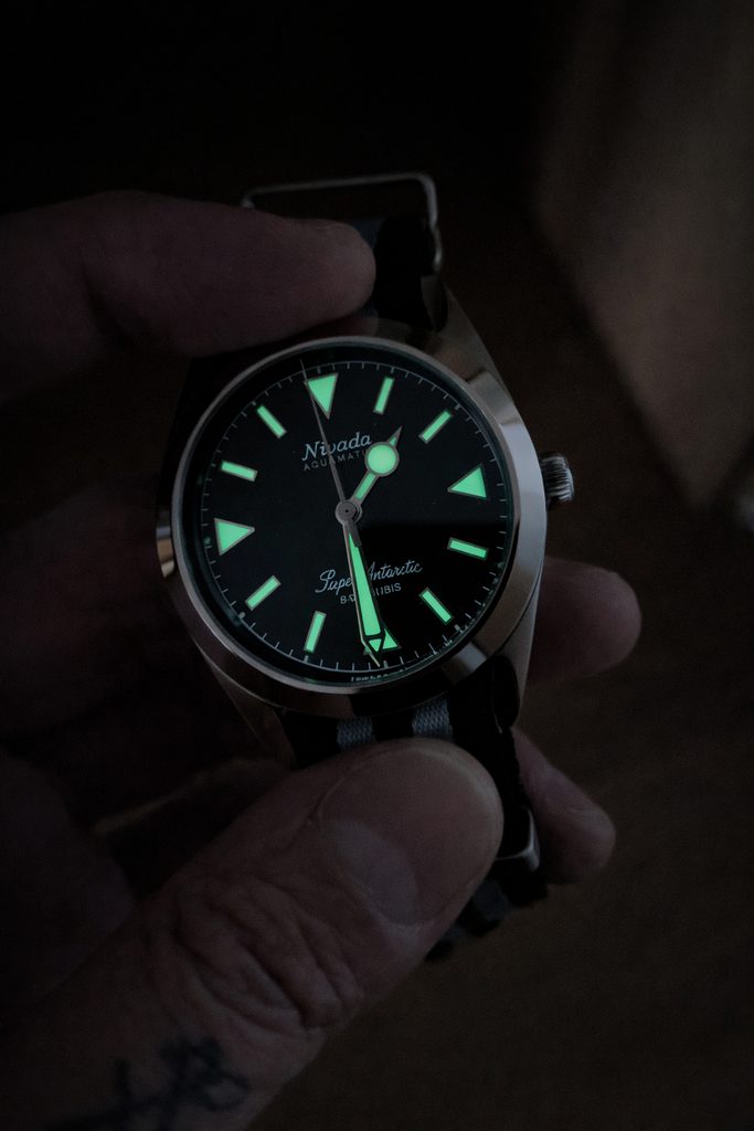 Hodinky Super Antarctic majú skutočnú atmosféru 50. rokov vďaka jedinečnej kombinácii hodinovej ručičky v tvare lízanky a veľkej minútovej ručičky v tvare meča. S (takmer) nadrozmernými trojuholníkovými indexovými značkami na 3., 6., 9. a 12. hodine model jasne ukazuje, prečo sa tieto hodinky používali v takých drsných podmienkach, ako je južný pól. Ciferník a ručičky spolu v dokonalej harmónii poskytujú vynikajúcu čitateľnosť a eleganciu.
