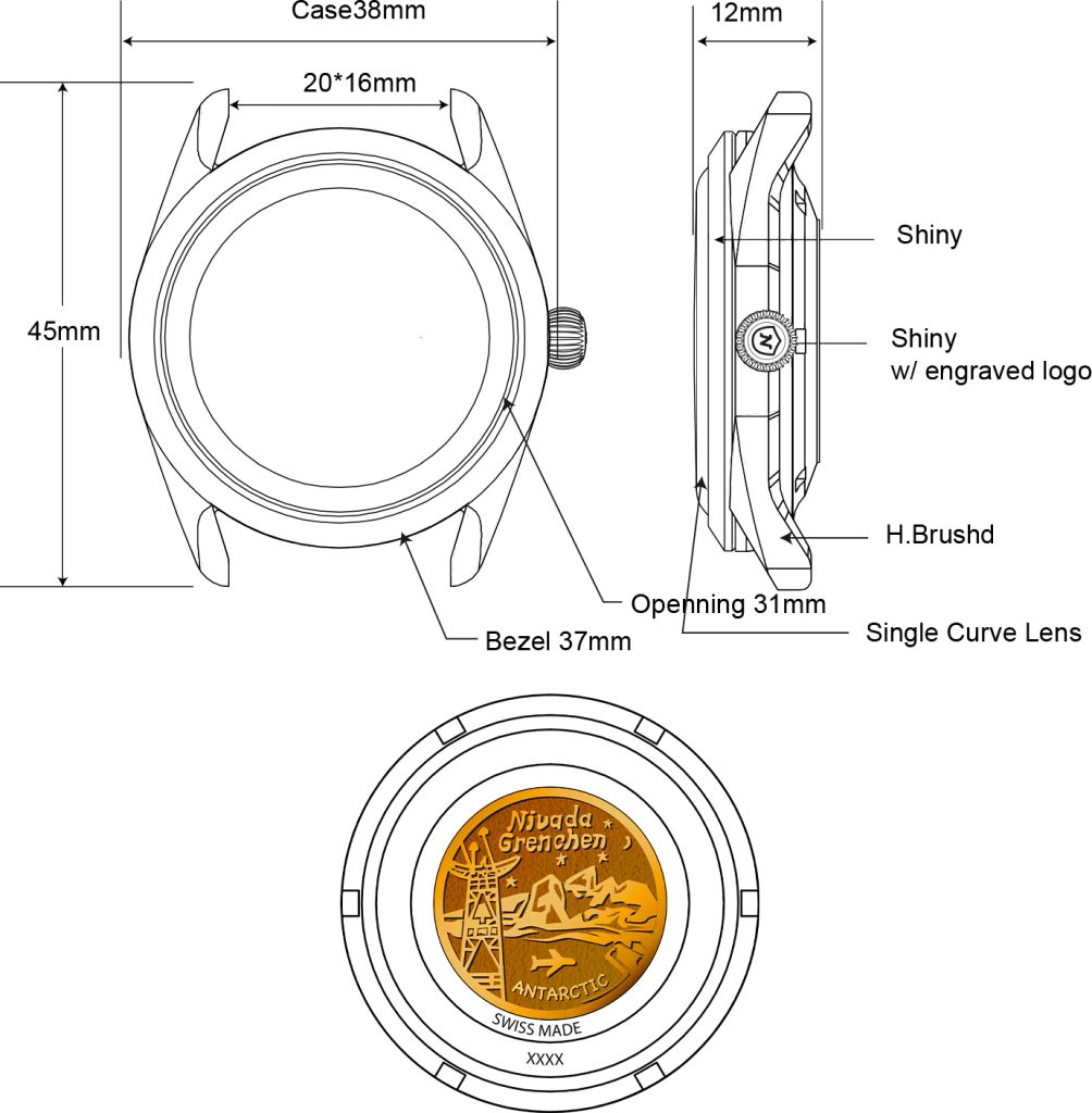 Hodinky Super Antarctic majú stredne veľké puzdro s priemerom 38 mm a hrúbkou 12 mm, vyrobené z nehrdzavejúcej ocele 316 s lešteným a brúseným povrchom. Vo vnútri hodiniek pracuje automatický strojček SOPROD P024. Model má vodotesnosť 10 ATM.