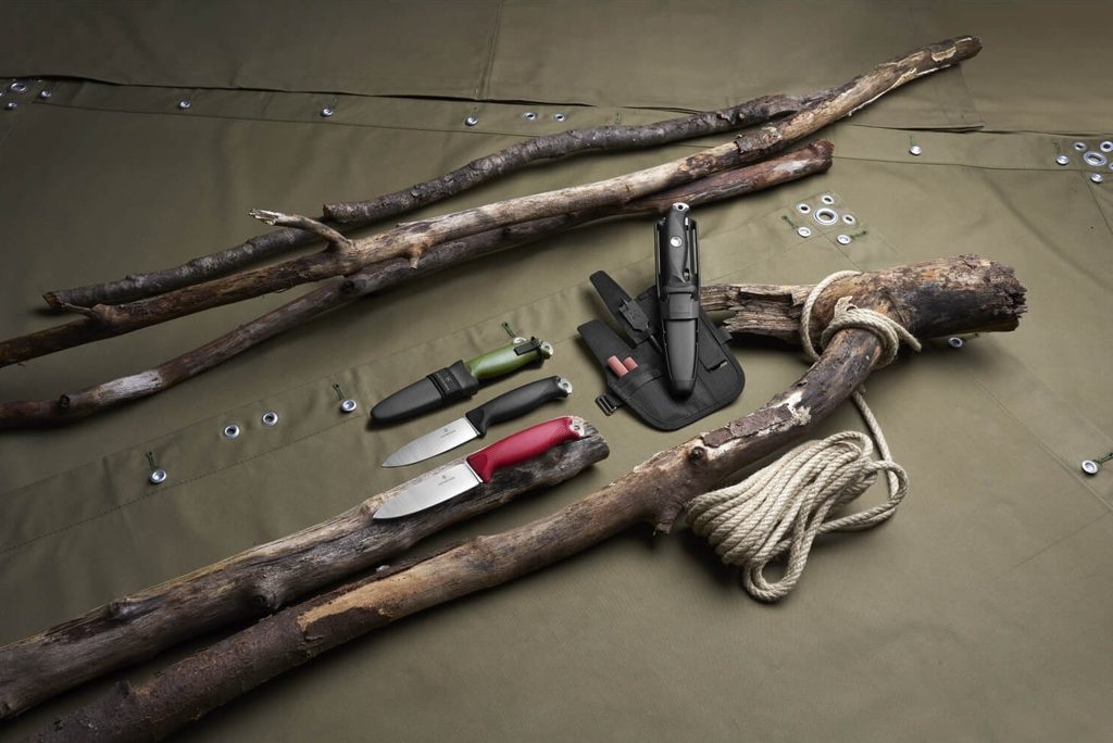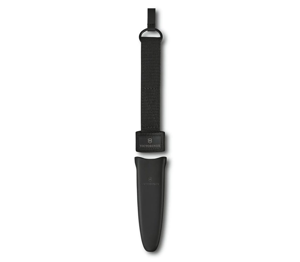 Nôž Victorinox Venture s pevnou čepeľou typu drop point s konštrukciou full tang. Na konci rukoväte je vyčnievajúci tang s: