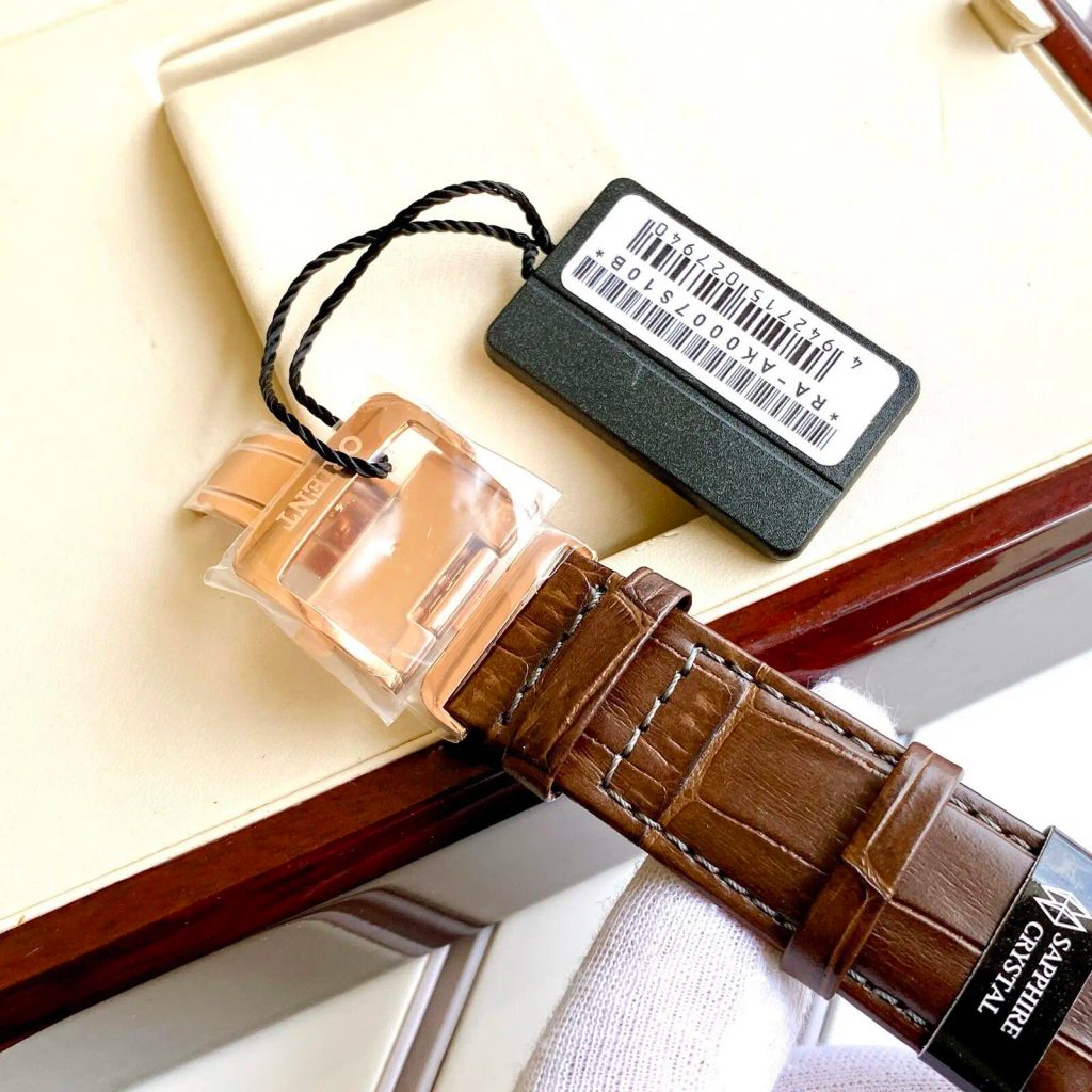Sofistikovaný, prehľadný ciferník chráni zafírové sklíčko s vysokou odolnosťou proti poškriabaniu. Vodotesnosť tohto modelu je 50 m, takže hodinky bez problémov vydržia bežný kontakt s vodou, napríklad dážď, umývanie rúk. Eleganciu hodiniek umocňuje dodávaný kožený remienok s krokodílím vzorom. Priemer puzdra 42,5 mm radí tento model medzi väčšie hodinky.