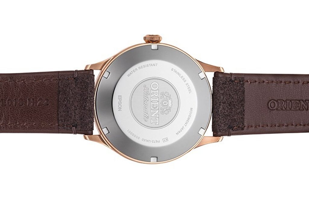 Nadčasový, dokonale prehľadný ciferník v bronzovej farbe je chránený minerálnym sklíčkom. Majiteľov potešia detaily v podobe reliéfnych indexov na pozíciách hodín alebo ručičiek z ružového zlata. Hodinky sú vybavené ukazovateľom dátumu na pozícii 3 hodín. Vodotesnosť tohto modelu je 30 m, takže vydrží kontakt s vodou pri umývaní rúk aj pri daždi. Hodinky sa dodávajú na remienku zo syntetickej kože. Vďaka priemeru puzdra 42 mm hodinky dokonale padnú na väčšinu pánskych zápästí.