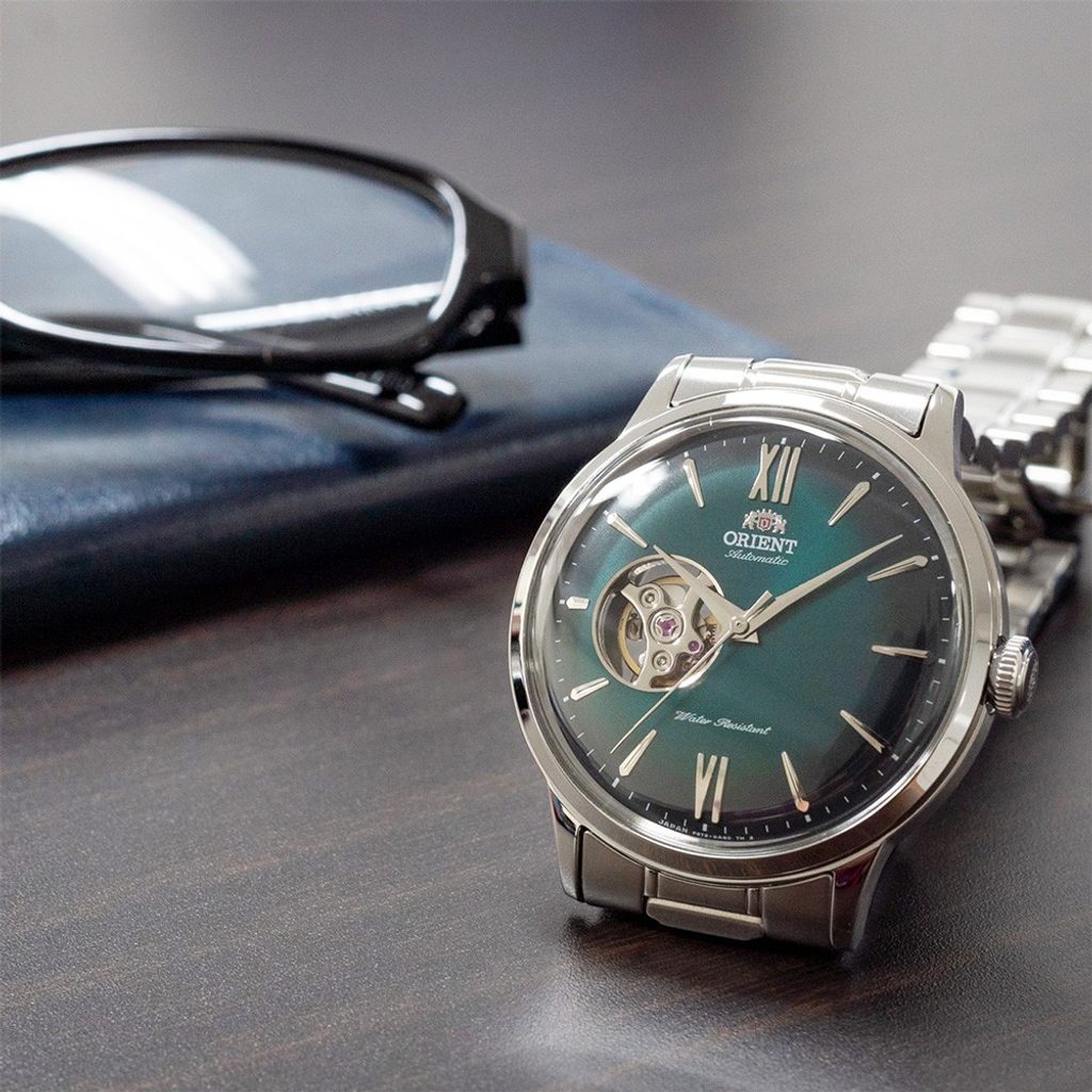 Puzdro hodiniek Orient RA-AG0026E30B je vyrobené z ušľachtilej ocele a v jeho vnútri nájdeme mechanický strojček Orient F6T22, ktorý je vybavený automatickým náťahom a rezervou chodu 40 hodín. Tento strojček je vybavený aj zastavením sekundovej ručičky pri nastavení hodiniek ( hacking). Mnohých určite poteší zotrvačník strojčeka na pozícii 9 hodín, tzv.otvorené srdce. Strojček, ktorý pracuje s frekvenciou 21 600 polúderov za hodinu, možno pozorovať vďaka priehľadnému ciferníku.