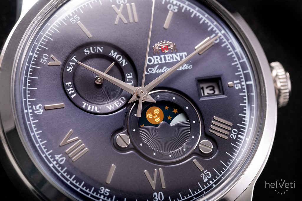 Hodinky Orient RA-AK0806L Sun and Moon sú známe ako Orient Bambino, patria do série Orient Classic a ich elegantný vzhľad je určený predovšetkým do spoločnosti, ale skvele sa hodia aj na každodenné nosenie. Charakteristickými znakmi hodiniek Orient Bambino sú klenuté sklíčko, zakrivený ciferník a 41,5 mm puzdro.