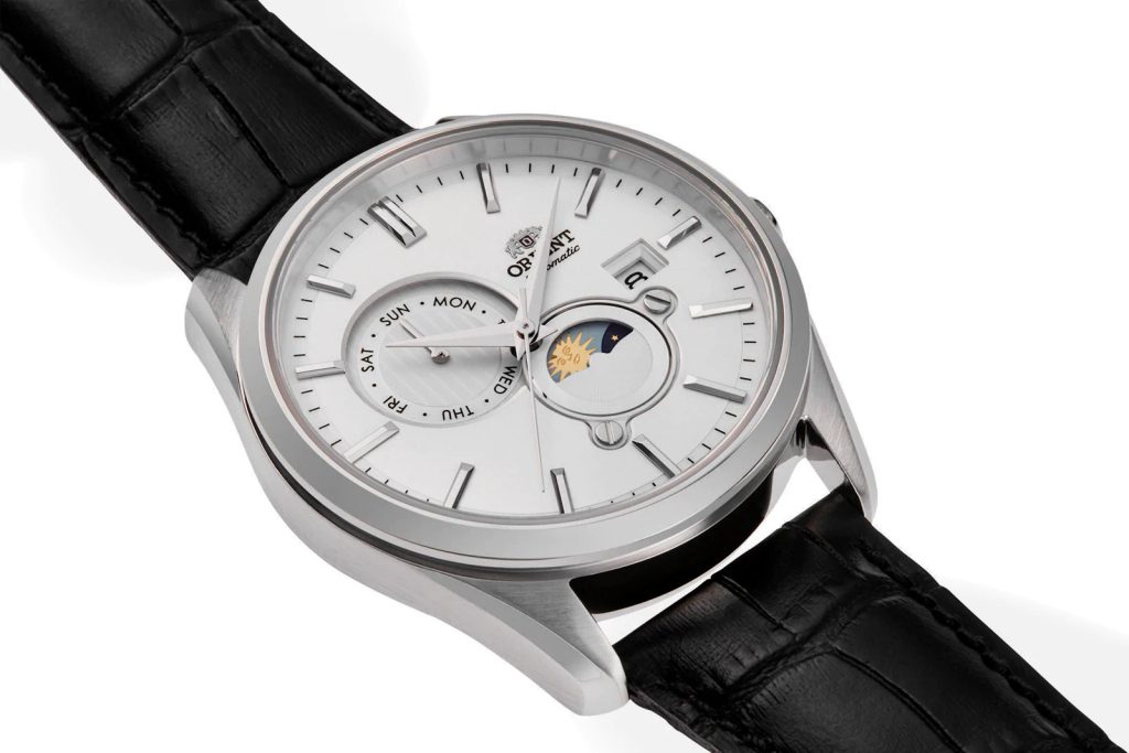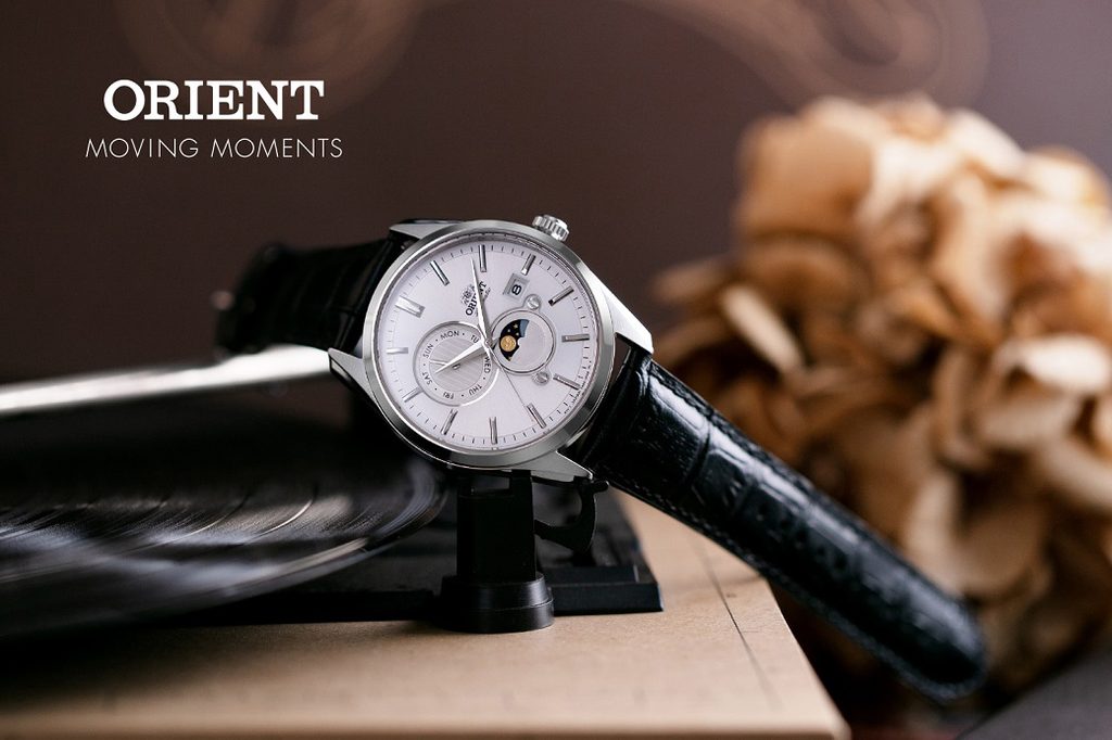 Hodinky Orient Automatic Sun and Moon Ver. 5 RA-AK0310S patria do série hodiniek Orient Classic a ich elegantný vzhľad je určený predovšetkým do spoločnosti, ale vďaka súboru funkcií sú ideálne na každodenné nosenie.