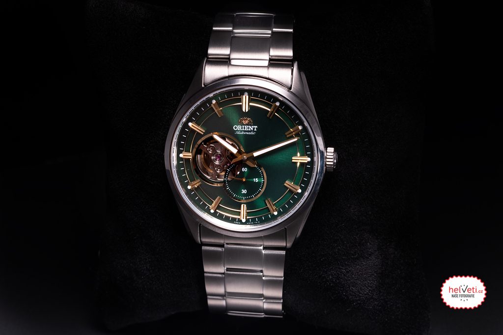 Zelený, dokonale priehľadný ciferník je chránený zafírovým sklíčkom. Najmä na svetle zaujme svojím zaujímavým výbrusom. Okrem toho hodinky potešia detailmi v podobe kontrastných zlatých ručičiek a reliéfnych indexov na pozíciách hodín alebo signovanej korunky. Vodotesnosť tohto modelu je 50 m, čo zaručuje odolnosť voči kontaktu s vodou pri daždi, umývaní rúk. Puzdro dopĺňa praktický oceľový náramok ukončený skladacím zapínaním. S priemerom puzdra 40,8 mm sa hodinky hodia na väčšinu pánskych zápästí.
