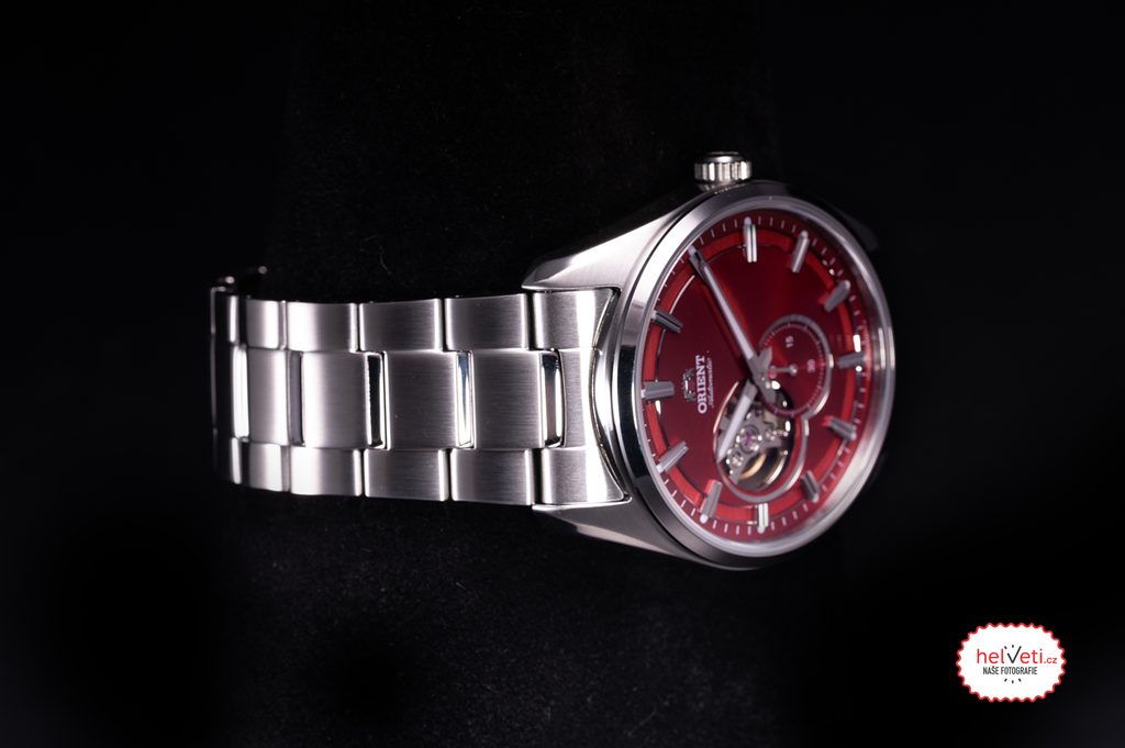Červený, dokonale priehľadný ciferník je chránený zafírovým sklíčkom. Hodinky potešia detailmi v podobe reliéfnych indexov na pozíciách hodín alebo signovanej korunky. Vodotesnosť tohto modelu je 50 m, čo zaručuje odolnosť voči kontaktu s vodou počas dažďa, umývania rúk. Puzdro dopĺňa praktický oceľový náramok zakončený skladacím zapínaním. Vďaka priemeru puzdra 40,8 mm sa hodinky hodia na väčšinu pánskych zápästí.