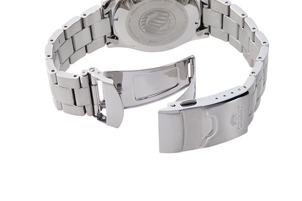 Vodotesnosť tohto modelu je 200 m, takže hodinky zvládnu kontakt s vodou vrátane aktivít, ako je plávanie. To všetko pomáha zabezpečiť skrutkovacia korunka. Ciferník je chránený zafírovým sklíčkom. Hodinky Orient RA-AA0003R39B sa dodávajú na oceľovom náramku a vďaka priemeru puzdra 41,8 mm sú stredne veľké.