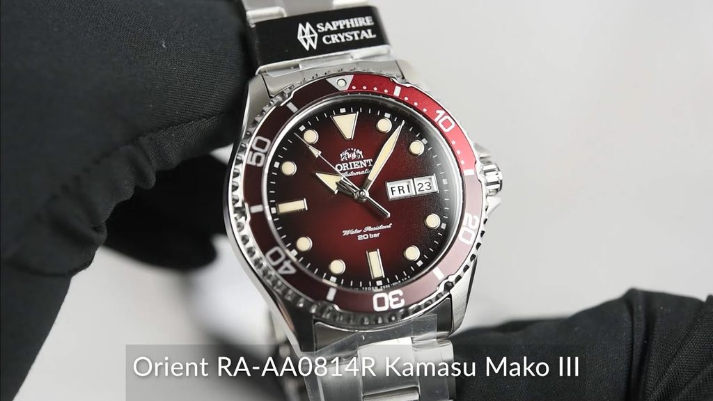 Gradientný bordový ciferník, ktorého farbu zaujímavo dopĺňa luminiscencia s nádychom patiny, chráni zafírové sklíčko. Puzdro hodiniek Orient Kamasu RA-AA0814R je vyrobené z nehrdzavejúcej ocele a nachádza sa v ňom mechanický strojček Orient F6922 s automatickým naťahovaním. Strojček má 22 drahokamov, pracovná frekvencia je 21600 polfrekvencií za hodinu a rezerva náťahu je približne 40 hodín. Okrem zobrazenia času ponúka funkciu dátumu a dňa v týždni na pozícii 3 hodín. Tento strojček má aj zastavenie sekundovej ručičky pri nastavovaní hodiniek (tzv. hacking) a možnosť ručného naťahovania. Jednosmerná otočná luneta slúži na meranie času nielen pod vodou, zatiaľ čo výrazné indexy a luminiscenčnéručičky zabezpečujú vynikajúcu čitateľnosť nielen na svetle, ale aj v tme.