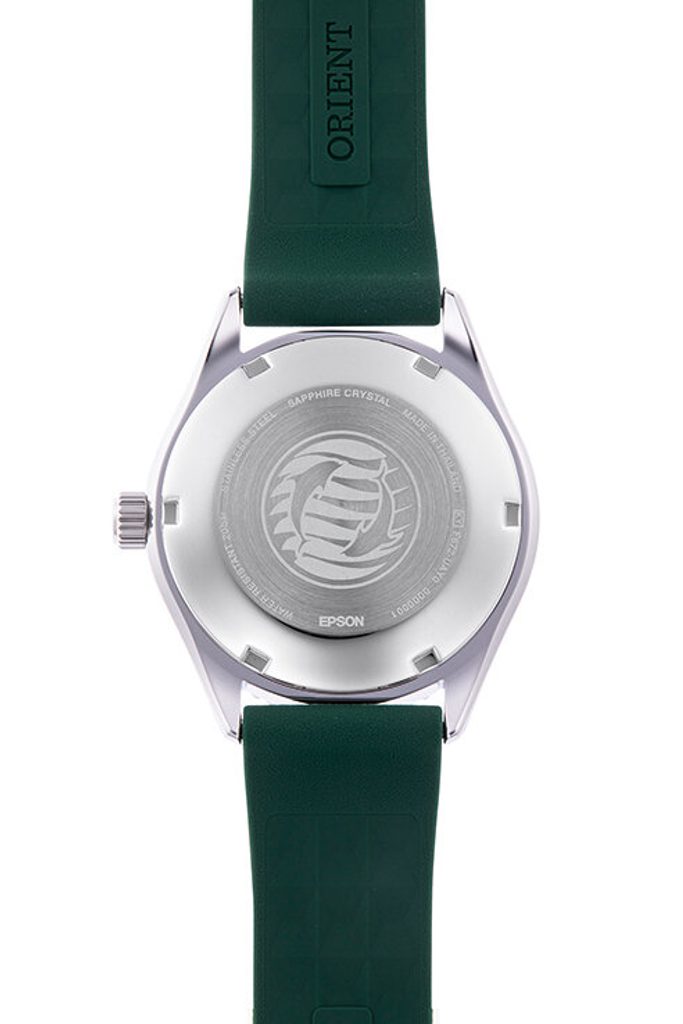 Vodotesnosť tohto modelu je 200 m, takže hodinky zvládnu kontakt s vodou vrátane aktivít, ako je plávanie. To všetko pomáha zabezpečiť skrutkovacia korunka a viečko. Hodinky Orient RA-AC0Q11E30B sa dodávajú na veľmi pohodlnom silikónovom remienku a vďaka priemeru puzdra 39,9 mm sú vhodné pre pánske aj dámske zápästie.
