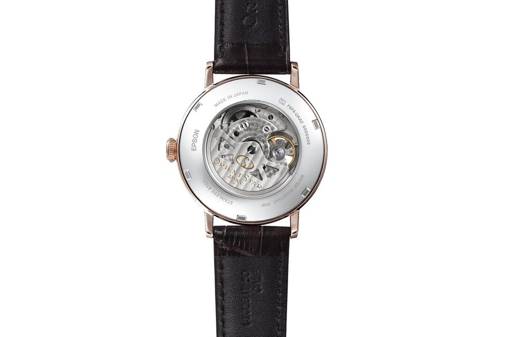 Puzdro hodiniek Orient Star RE-AV0001S00B jevyrobené z nehrdzavejúcej ocele s ružovozlatou povrchovou úpravou a v jeho vnútri sa nachádza mechanický strojček vlastnej výroby Orient F6R42. Tento strojček so samonáťahom ponúka rezervu chodu približne 50 hodín. Samozrejmosťou je funkcia zastavenia sekundovej ručičky pri nastavovaní času (tzv. hacking) a zaujímavou komplikáciou je ukazovateľ rezervy náťahu na 12. hodine. Mnohých poteší pohľad na zotrvačnosť strojčeka na pozícii 9 hodín, takzvané "otvorené srdce" a mimo stredu umiestnená sekundová ručička. Strojček pracujúci s frekvenciou 21 600 polobitov za hodinu možno pozorovať vďaka priehľadnému vieku.