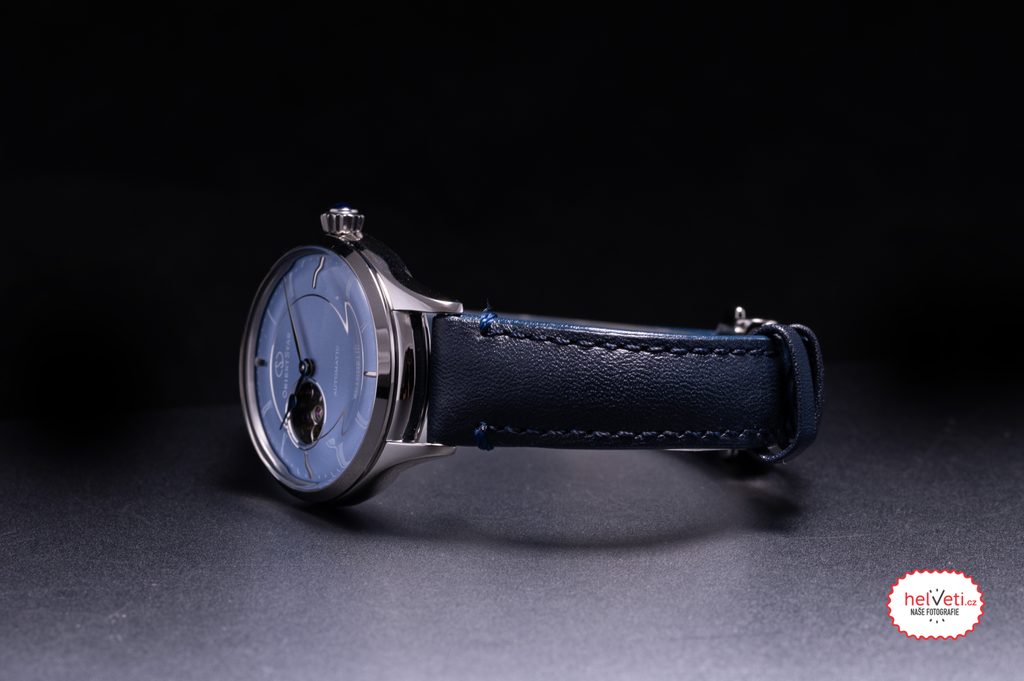 Jednoduchý, nadčasový, dokonale čistý jemne modrý ciferník chráni mierne vypuklé minerálne sklíčko. Hodinky potešia svojimi detailmi, medzi ktoré patria jemné modré ručičky, tvarovo zaujímavá signovaná korunka s kabošónom, rímske číslice na hodinách a efekt klenutého skla. Hodinkám nechýba celková jemnosť detailov a výnimočná kvalita spracovania. Eleganciu hodiniek umocňuje dodávaný kožený remienok so skladacou sponou. Vodotesnosť tohto modelu je 50 m, takže hodinky bez problémov vydržia bežný kontakt s vodou, napríklad dážď, výnimočne aj sprchu. Vďaka svojmu špecifickému vzhľadu a priemeru puzdra 30,5 mm sú skvelou voľbou pri výbere elegantných dámskych hodiniek.