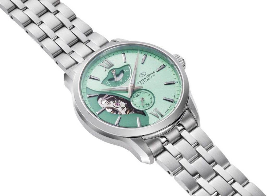 Kolekcia pánskych hodiniek Orient Star Layered Skeleton je inšpirovaná svetom pánskej módy. Vyznačuje sa originálnym ciferníkom zloženým z dvoch vrstiev. Vyššia plocha predstavuje látku oblekov, zatiaľ čo otvor puzdra ciferníka má tvar paisley vzoru, čím predstavuje hladkú a lesklú podšívku. Ciferník zaujme svojím jedinečným vzhľadom. Jemné zakrivenie nožičiek puzdra potom môže evokovať záhyb látky. Celkovo veľmi elegantný nový dizajn predurčuje hodinky ako doplnok na formálne príležitosti.