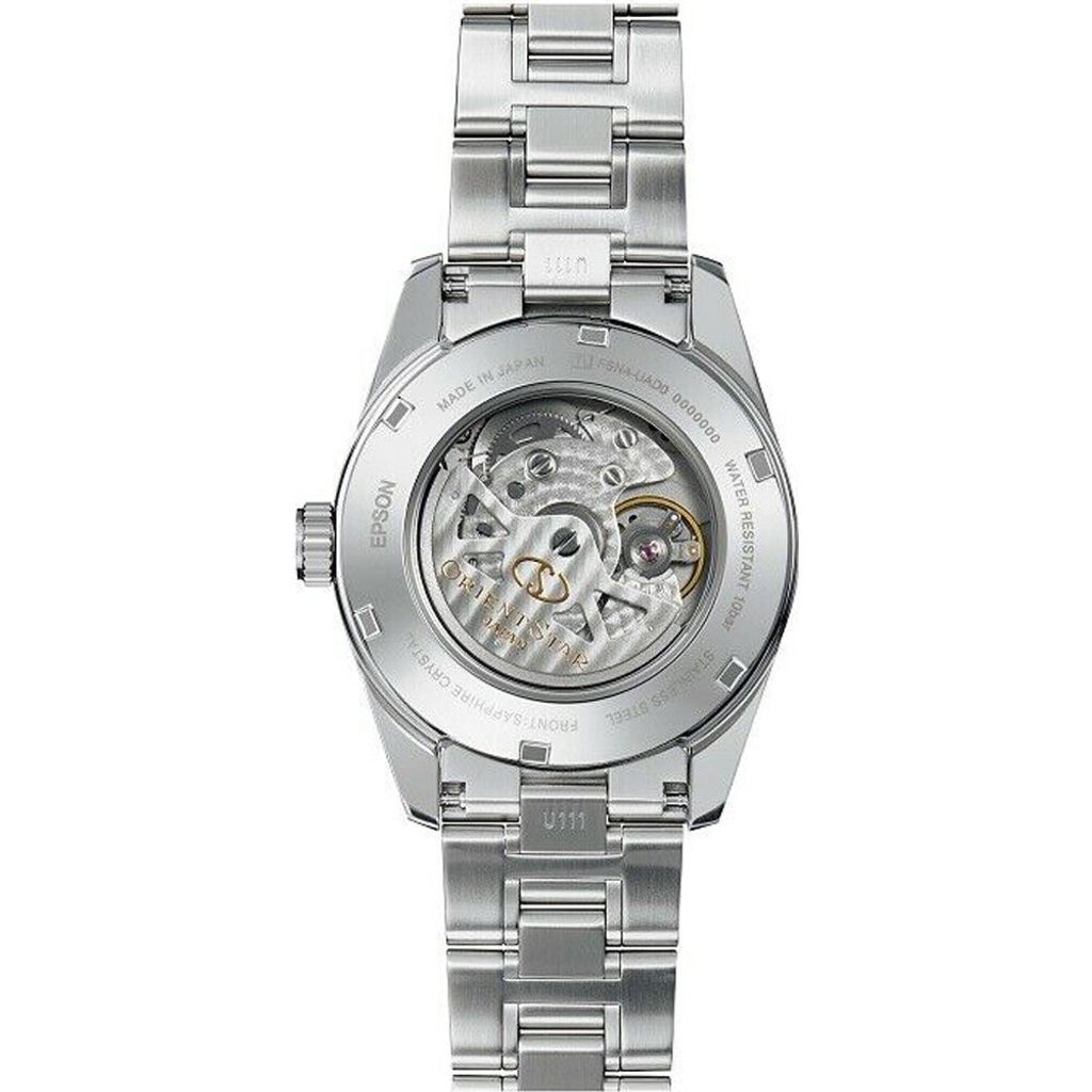 Puzdro hodiniek Orient RE-AU0005L00B je vyrobené z nehrdzavejúcej ocele a v jeho vnútri sa nachádza mechanický strojček Orient F6N43, ktorý je vybavený automatickým naťahovaním a rezervou chodu 50 hodín. Tento strojček je tiež vybavený zastavením sekundovej ručičky pri nastavení hodiniek (hacking) a zaujímavou komplikáciou je ukazovateľ rezervy náťahu na 12. hodine. Strojček pracujúci s frekvenciou 21 600 polobitov za hodinu možno pozorovať vďaka priehľadnému ciferníku.