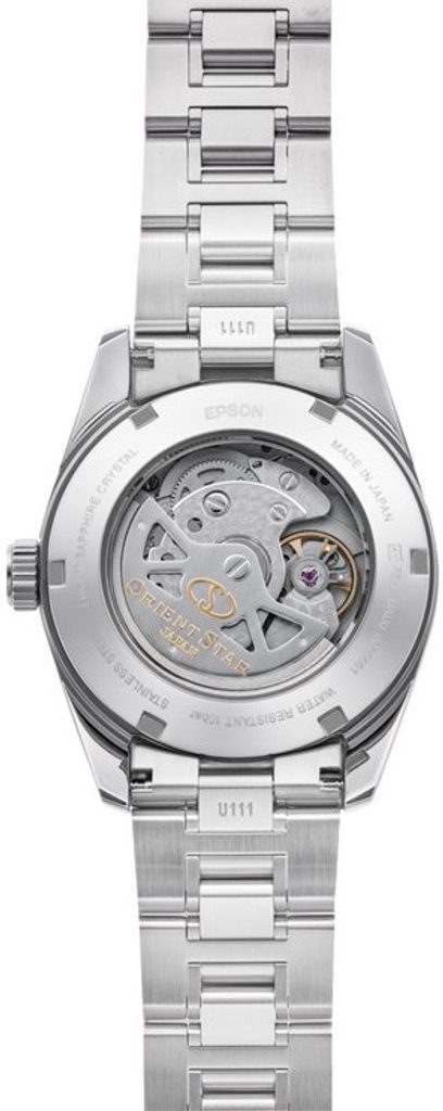 Puzdro hodiniek OrientRE-AU0108G00B jevyrobené z ušľachtilej ocele a v jeho vnútri nájdeme mechanický strojček Orient F6N43 s funkciou automatického naťahovania a rezervou chodu približne 50 hodín. Tento strojček je samozrejme vybavený aj funkciou zastavenia sekundovej ručičky pri nastavení hodiniek (hacking) a zaujímavou a užitočnou komplikáciou je ukazovateľ rezervy náťahu na pozícii 12 hodín. Činnosť strojčeka, ktorý pracuje s frekvenciou 21 600 polúderov za hodinu, možno pozorovať vďaka priehľadnému ciferníku.