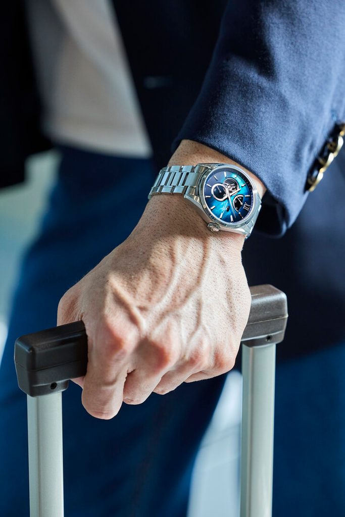 Tmavý perleťový ciferník limitovanej edície je inšpirovaný farbou polárnej žiary. Inšpiroval ho motív farebného svetelného závoja plávajúceho na nočnej oblohe, ktorý sa neustále mení.
