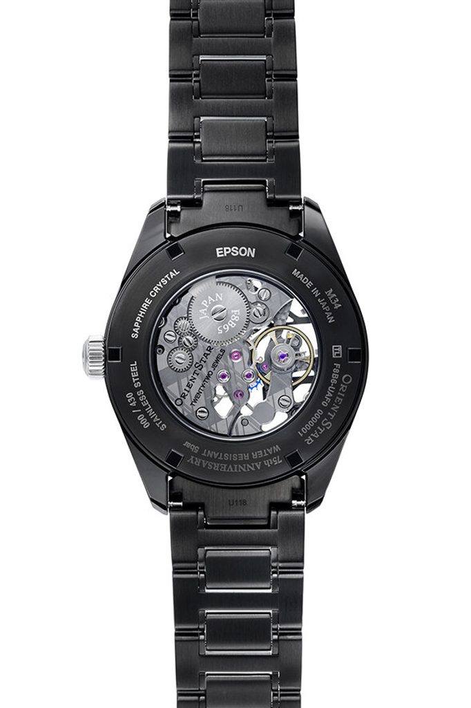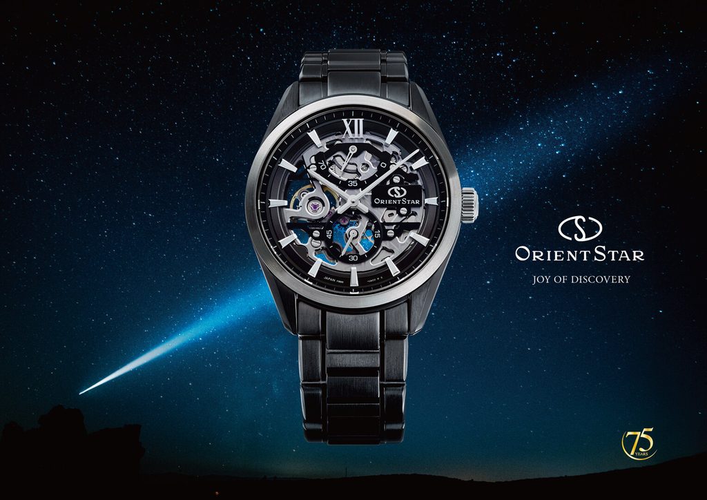 Orient Star Contemporary Skeleton M34 F8 RE-AZ0105N 75th Anniversary Limited Edition oslavuje 75 rokov japonskej značky. Patrí do kolekcie M34 a ponúka nezvyčajný pohľad na samotné srdce hodiniek prostredníctvom skeletovaného ciferníka. Odhaľuje krásu a dokonalosť jemnej mechaniky v dizajne inšpirovanom meteorickým rojom Perzeíd a tajomstvom vesmíru.